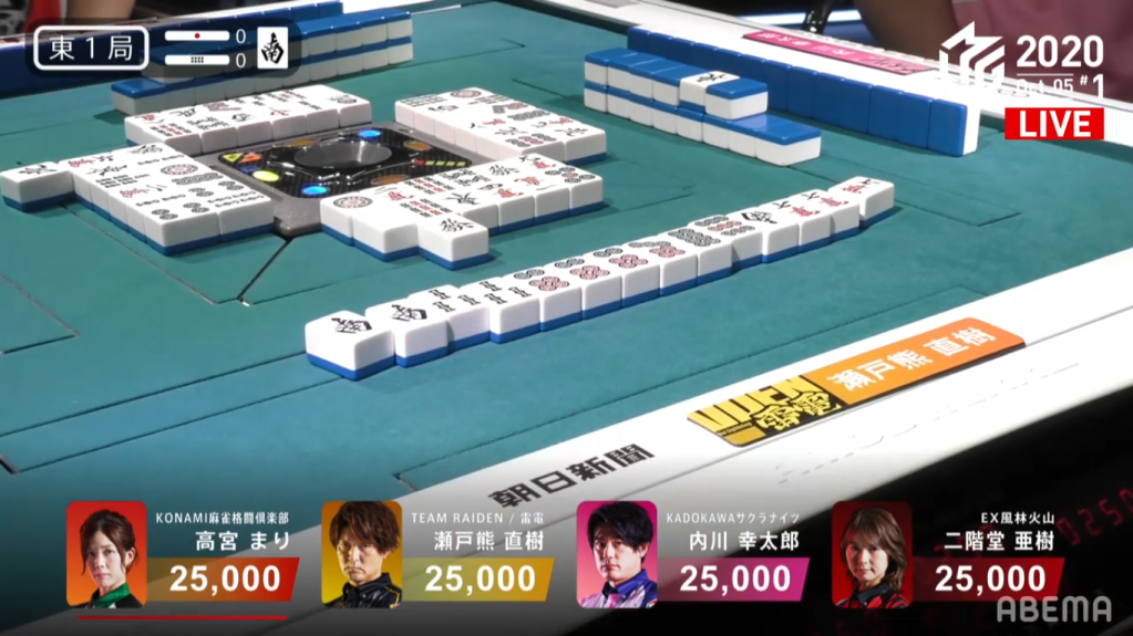 In E1-0 in the very first game of the season, Setokuma wins the hand with a kata-agari South/Dora 3 for 8,000 points, starting the season off with a mangan.