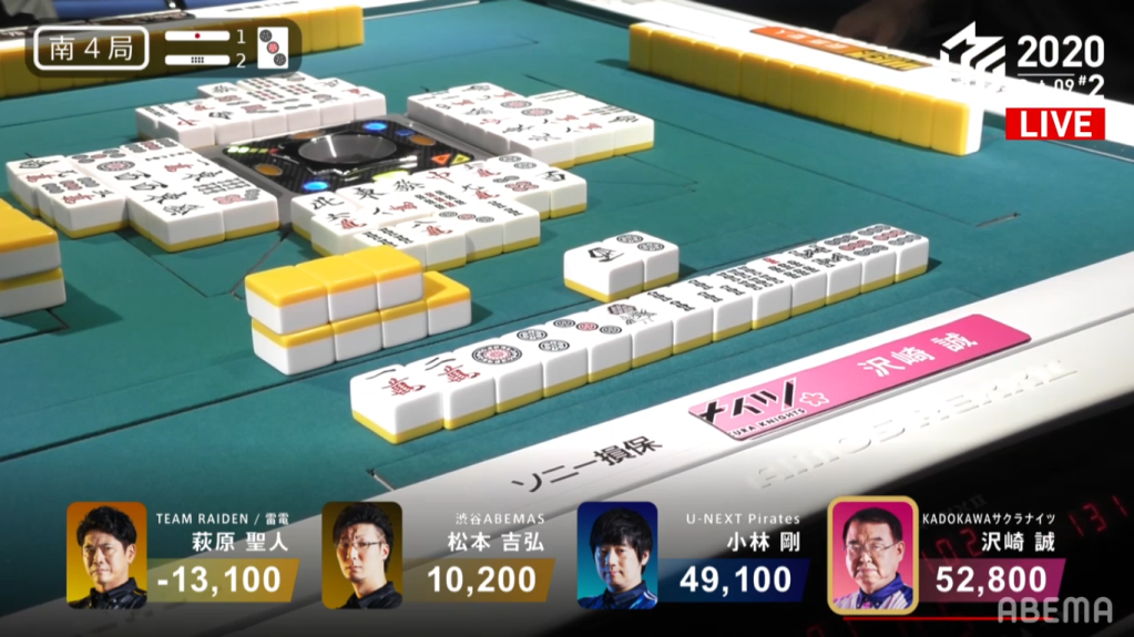 With Kobayashi winning a 1,000+900 point hand the next hand, the game finished with Sawazaki wins what was a close battle between Kobayashi and himself, and thus wins the game.