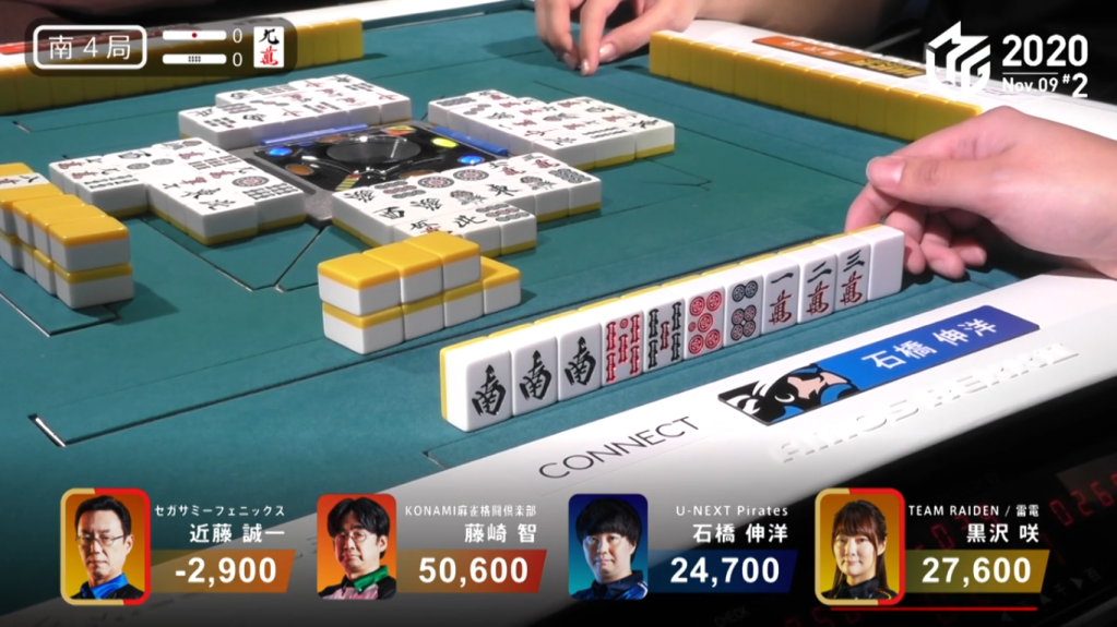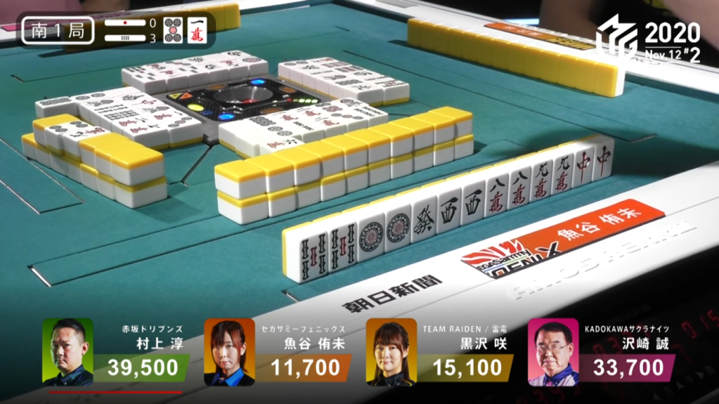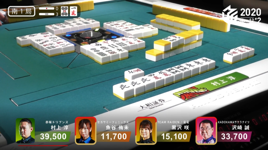In the East round alone, there were 11 hands played. In comparison, the previous game ended after 8. Four hands in a row, the hand had gone to ryuukyoku with the dealer Kurosawa in tenpai every time. Even in the south round, 4th place Murakami had an outstanding dealer turn and ended up 1st after his run was done at 4 honba.