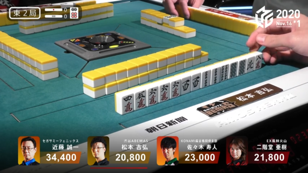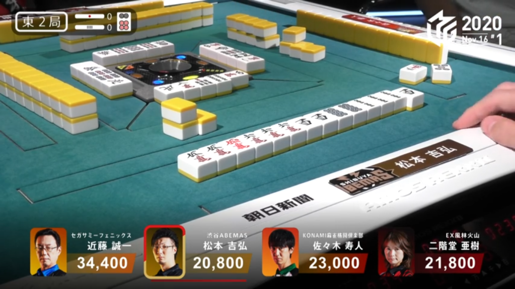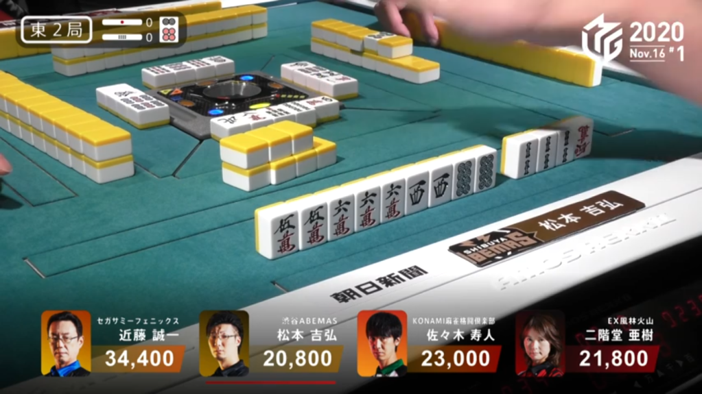 As luck would have it, on Matsumoto’s first draw after riichi, only his 6th turn of the hand, Matsumoto finds the west. With the Suuankou win, Matsumoto wins the first yakuman of M-League 2020. Matsumoto’s yakuman win was influential to that and the next game, where players were seen going for yakuman such as kokushi when it would normally be inadvisable to.