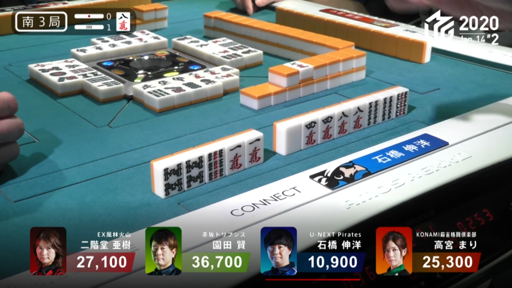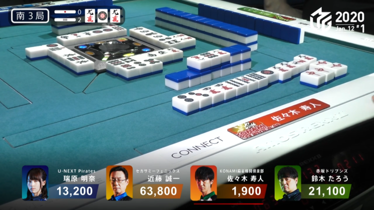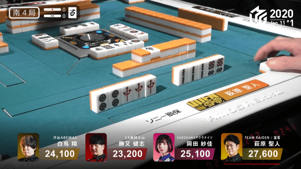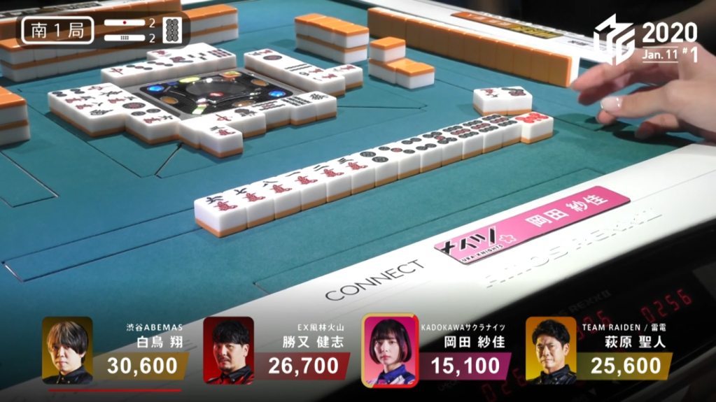 In S2-0, a small and largely unnoticed incident occurred. As Okada was organizing her hand in the at the start of the 2nd row, two tiles from her hand were revealed. As the rules state if two or more tiles are revealed from the player’s hand or the wall, the player receives a yellow card. If a player receives two yellow cards, then the player receives a red card, which holds the equivalent punishment of a chombo (-20 from a team’s score). At the end of the hand, an announcement was made to say that Okada had received a yellow card.