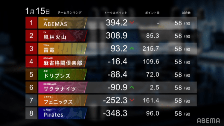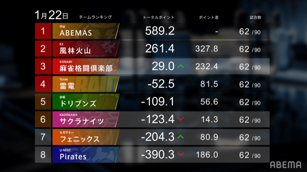 The Konami Mahjong Fight Club takes the 3rd spot in the rankings. After going below 0 last week, they made their way back to the positives this week. They they are in a nice position for a playoff spot, they are only a few 4ths away from falling out.