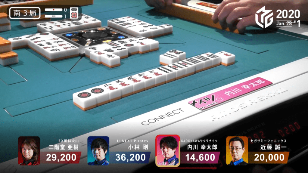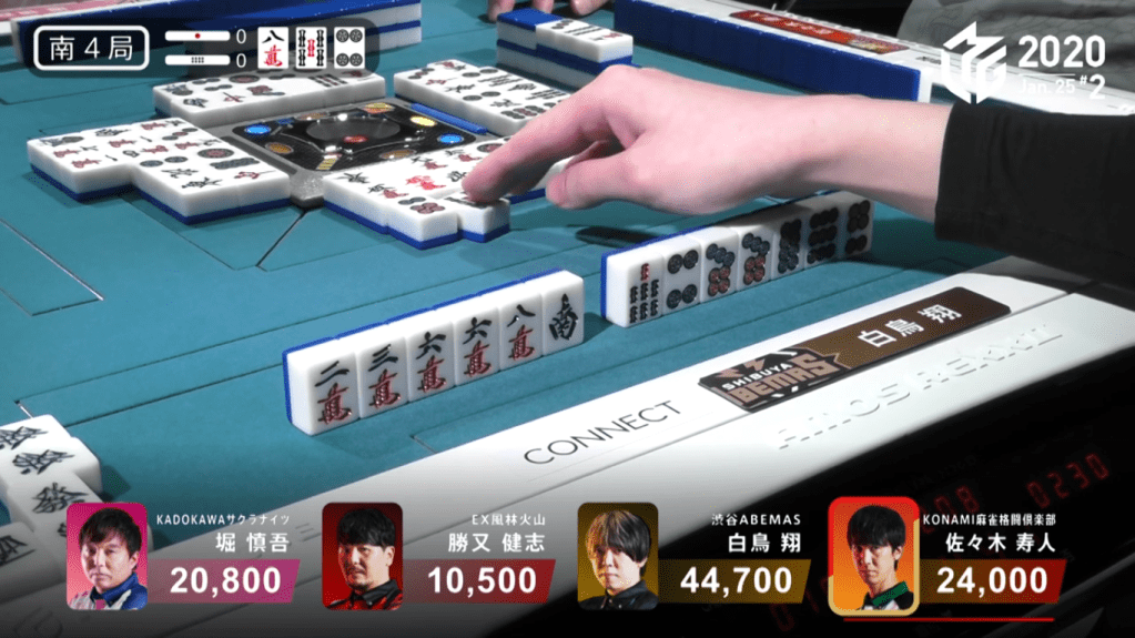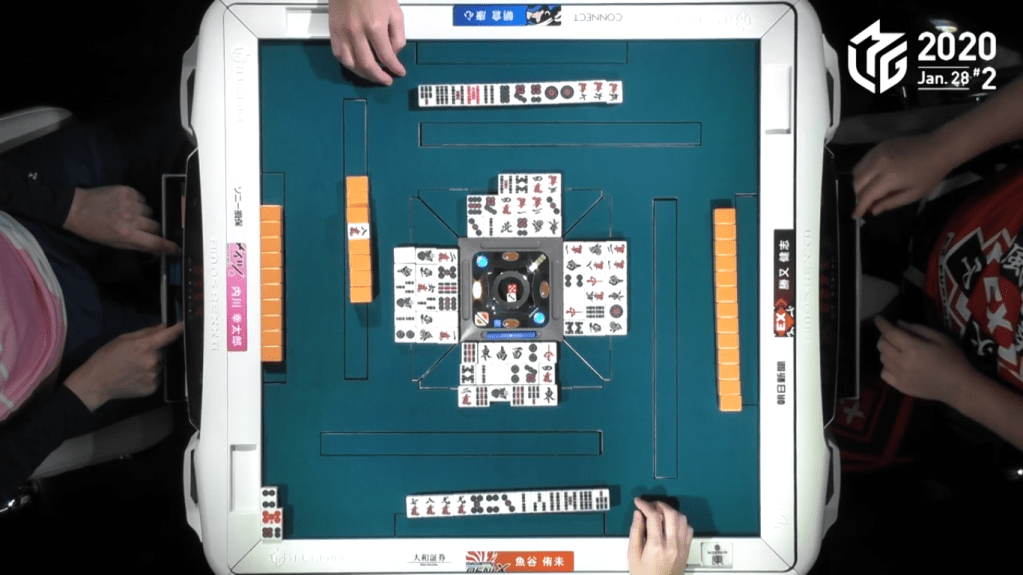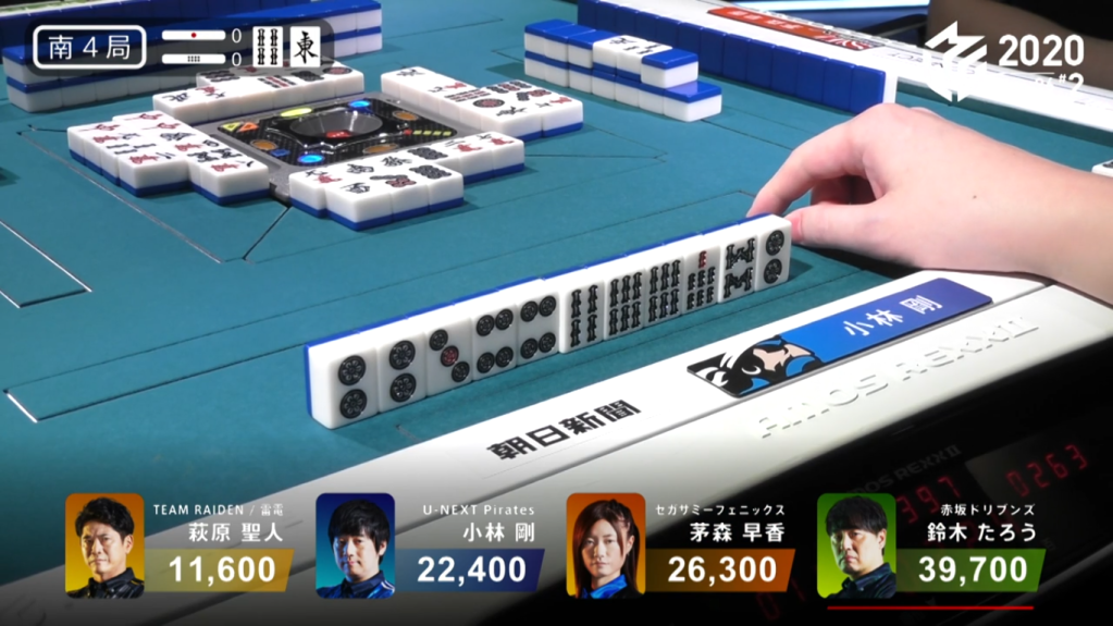 In the end, Kobayashi decided to call riichi by throwing the 4p and wait on his 5s kanchan. As an audience, we could see that Kobayashi’s waits were all in people’s hands.