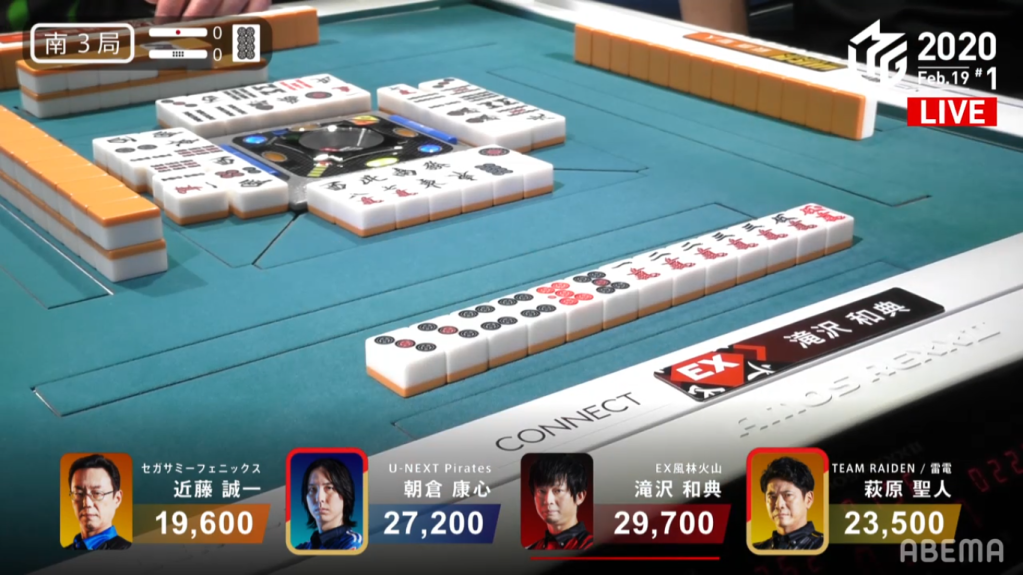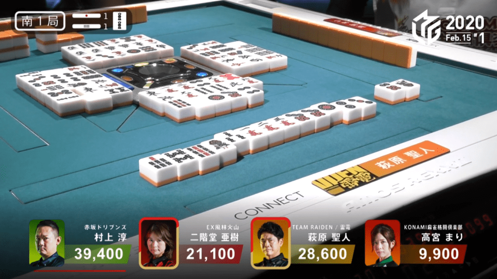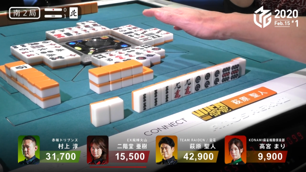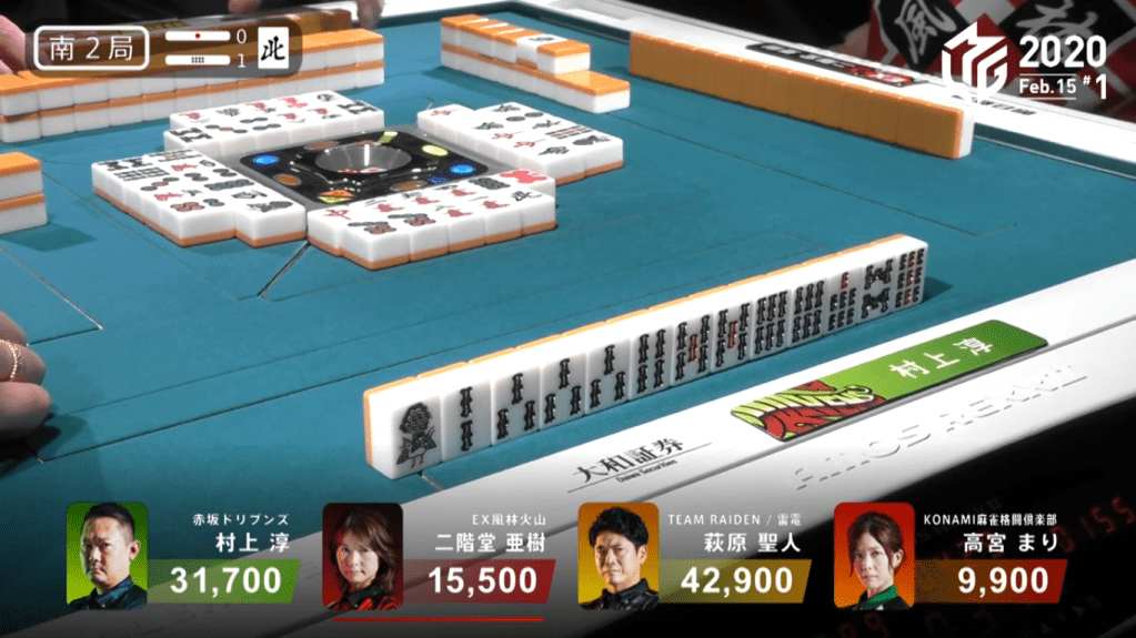 Unfortunately for both Hagiwara and Murakami, neither of the hands pan out. The hand end in ryuukyoku with only Takamiya noten. With the potential of a 32,000 point hand and a 24,000 point hand, the 1,000 point gain was a very unfortunate consolation prize
