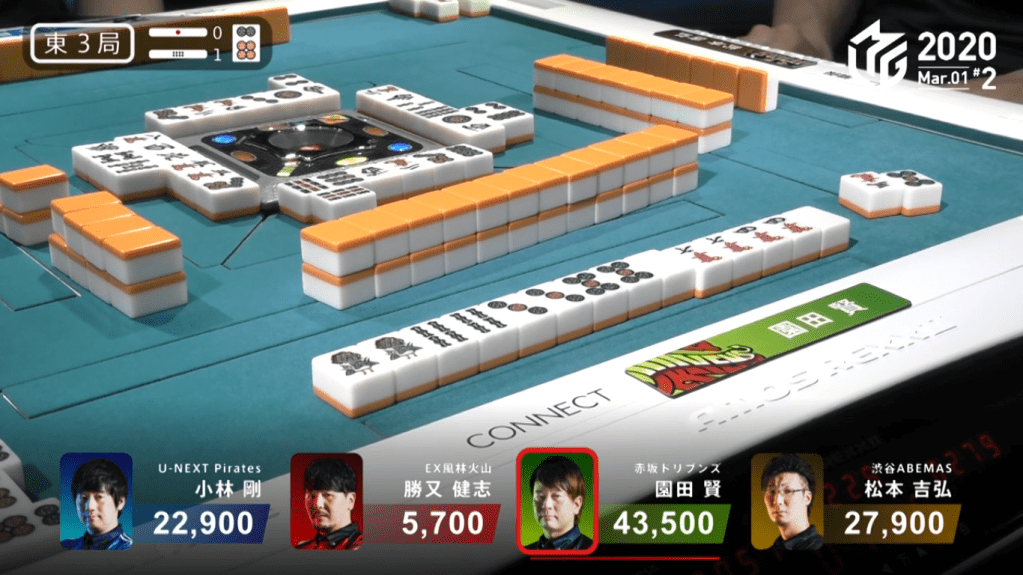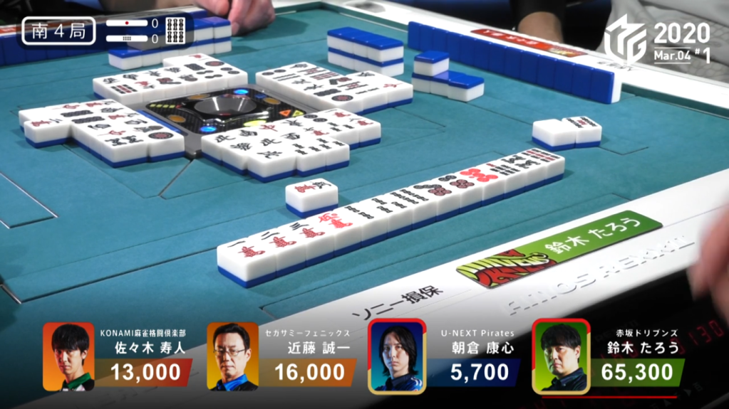 Over the first 5 hand of the game, Taro was able to get 29,500 points to get him to 54,500 points, a commanding lead in such an important game.