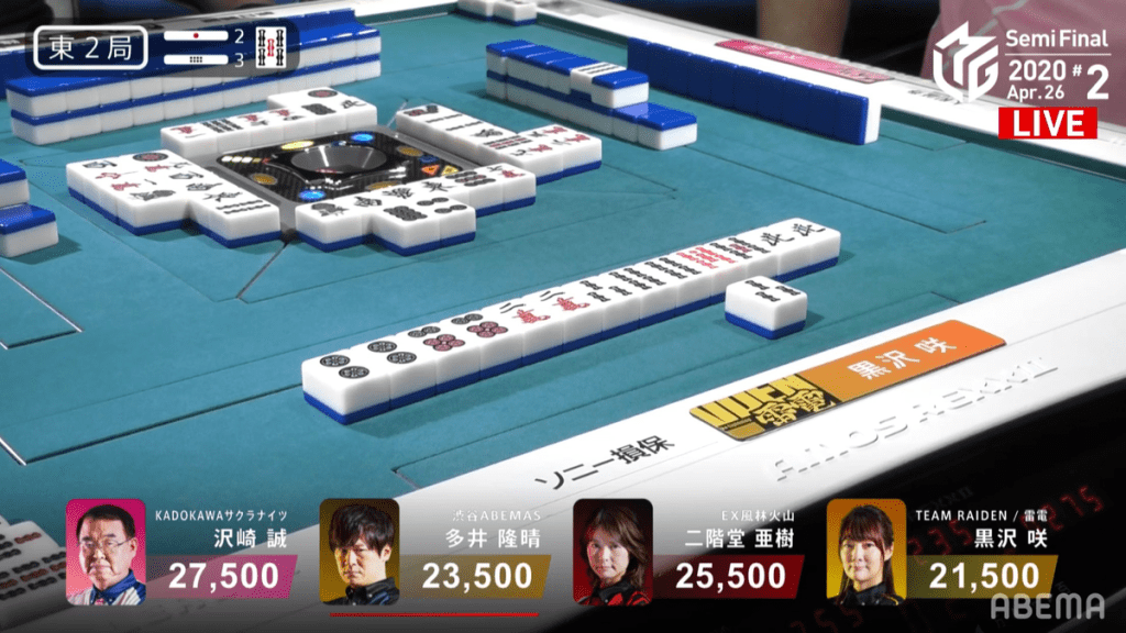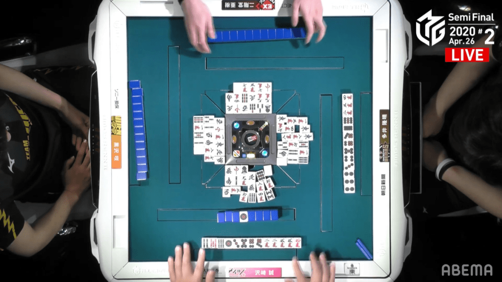 Even near the end, the dead wall had hoarded the tiles and the hand went to a draw with Sawazaki and Ooi in tenpai.