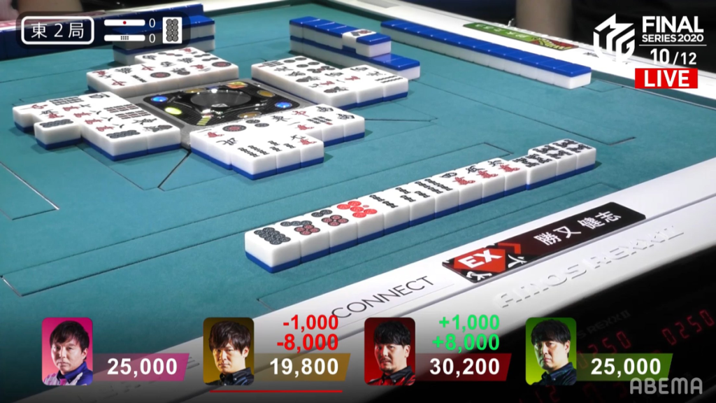 Though the hand seems like a standard mangan, it was more than that. With the win, it put Hori into last place. If the game were to end now, then the EX Furinkazan would move into 1st place in the overall standings.