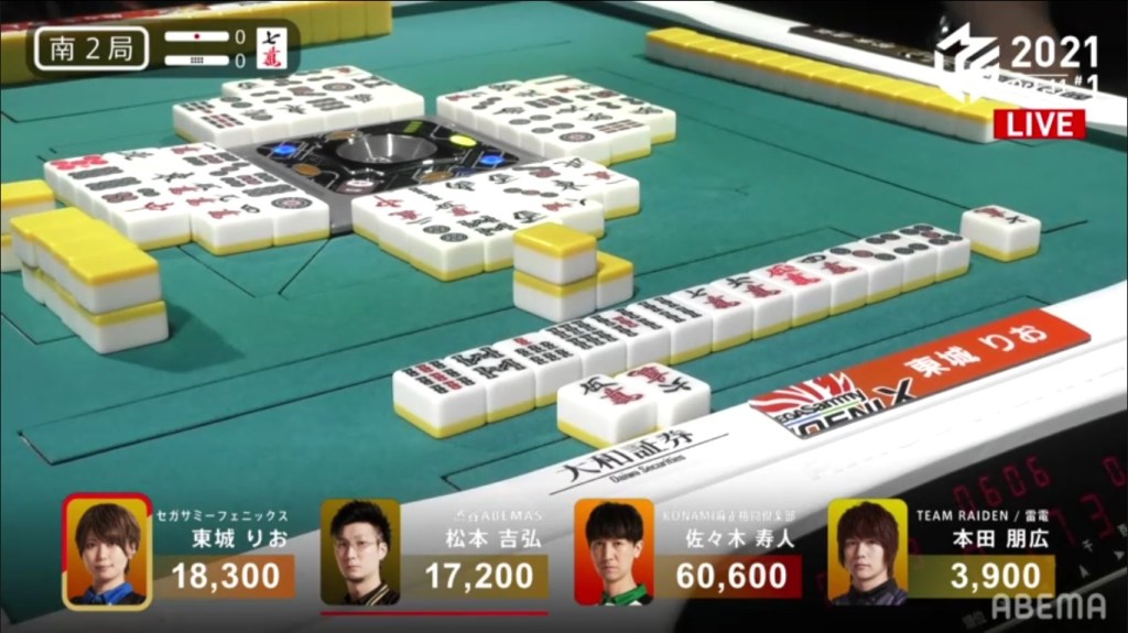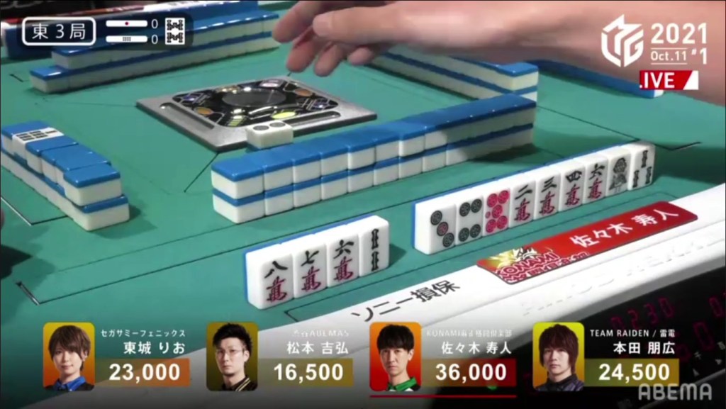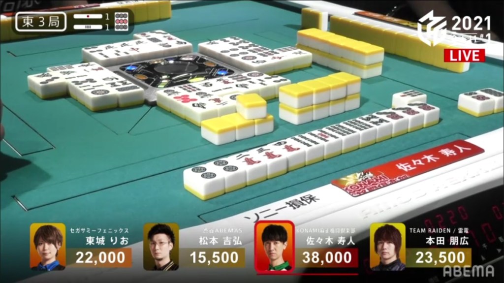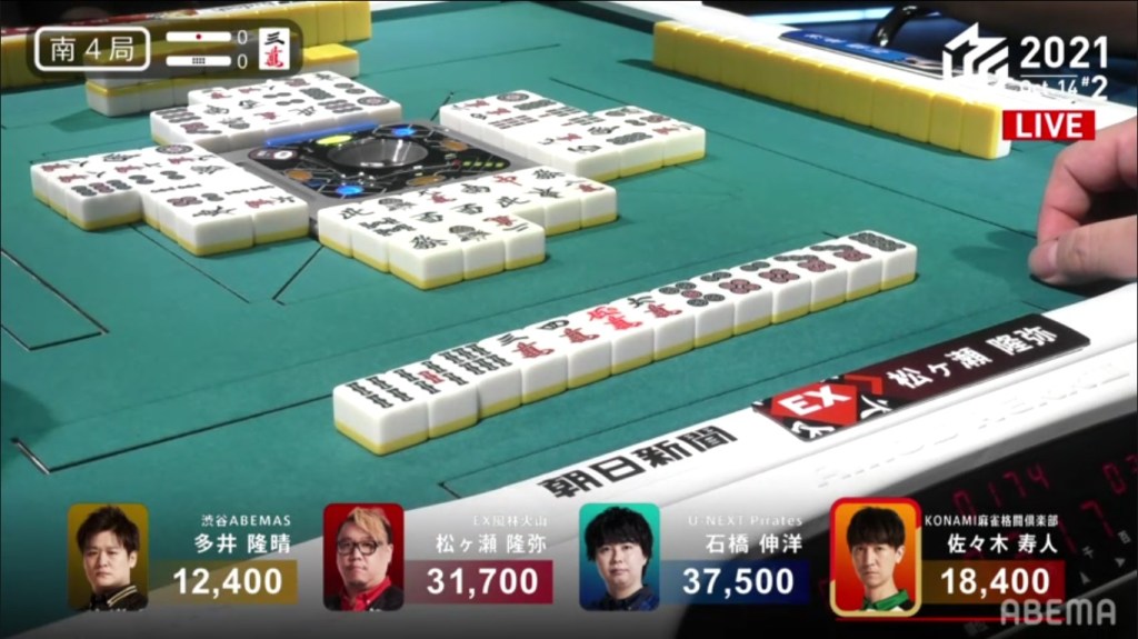 In the end, the hand ends in a draw with Sasaki the only one in tenpai.