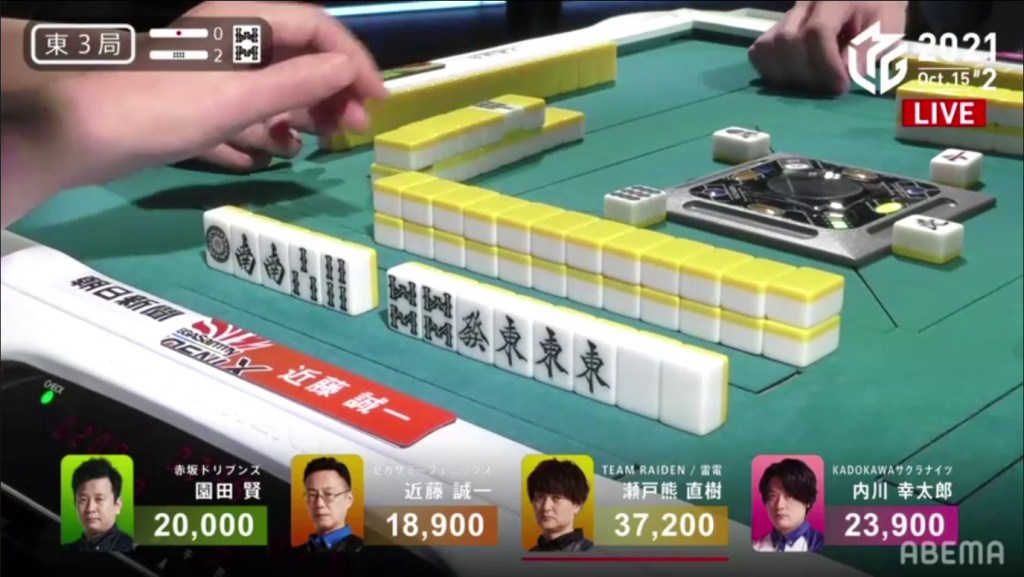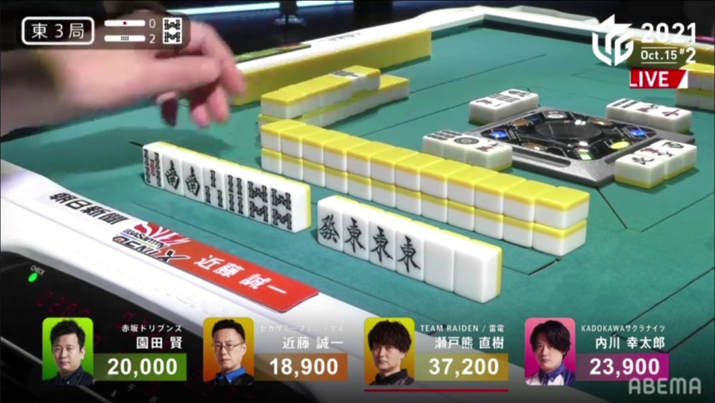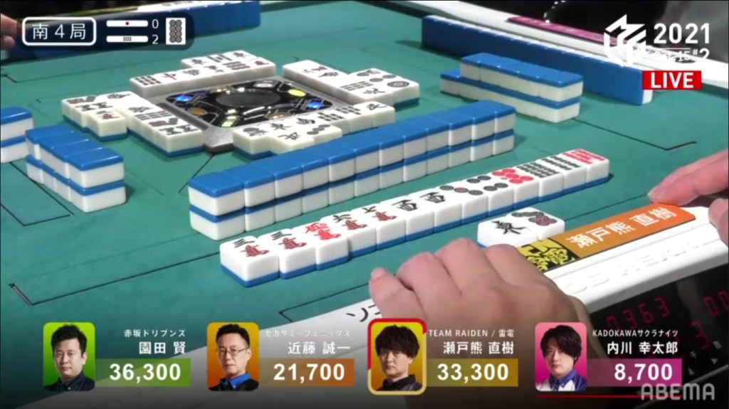 After all the drama, the hand calmed down and eventually came to an end. The hand ended in a draw with Kondo and Setokuma the only ones tenpai.