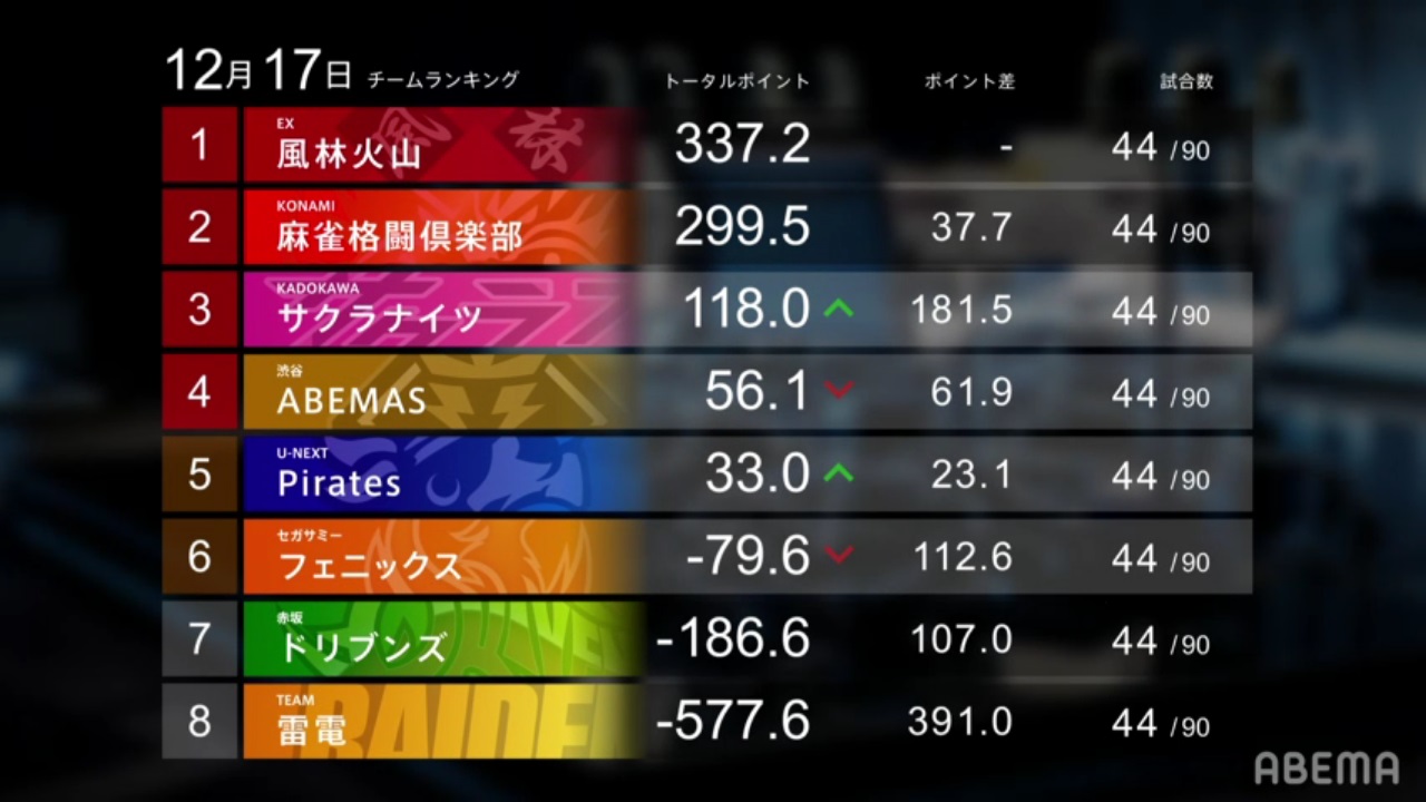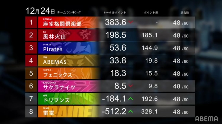 That’s all for this week! There will be two more games next week, then M-League games for the year 2021 will be over! Can the Konami Mahjong Fight Club defend their 1st place standing? Can the middle teams end the year off in the positives? Can the Akasaka Drivens and Team Raiden end off the year with big progress made? As always, we’ll just have to wait and see!