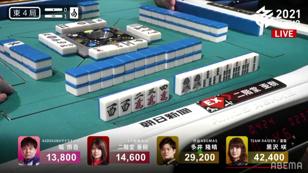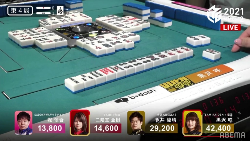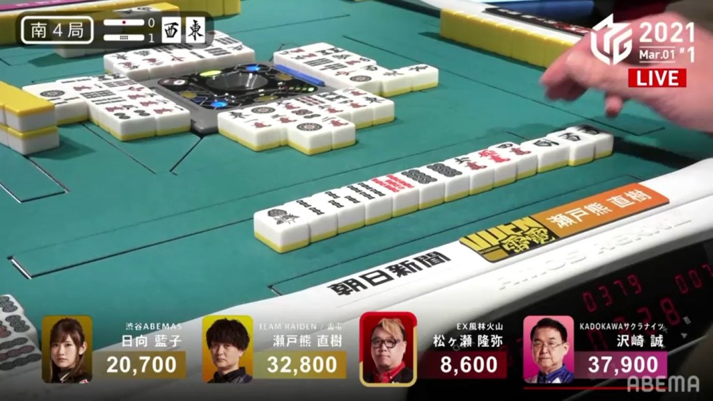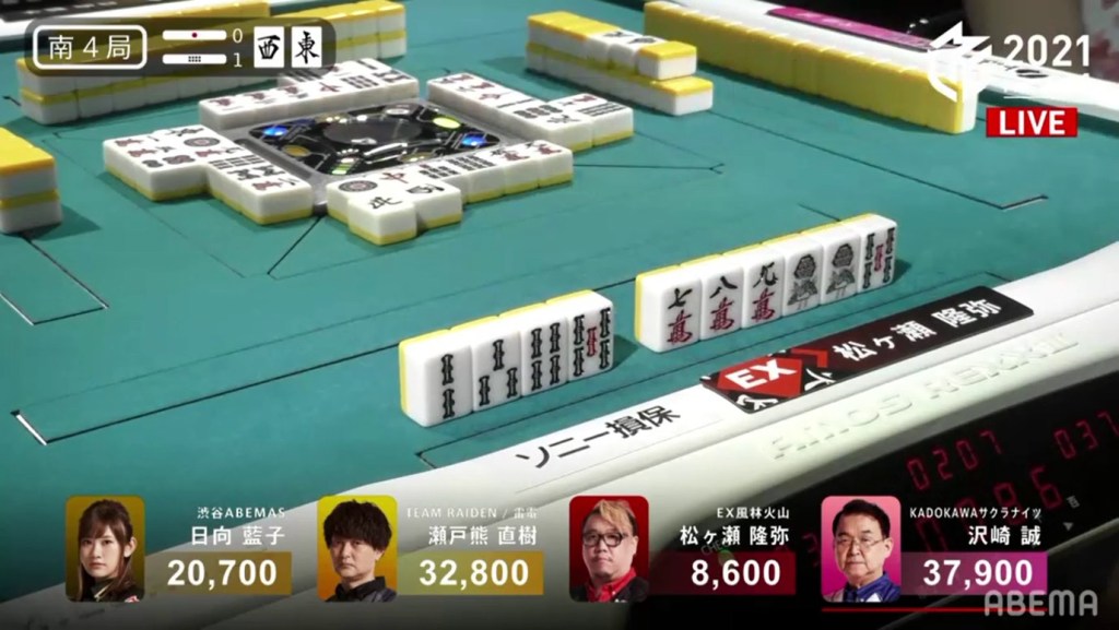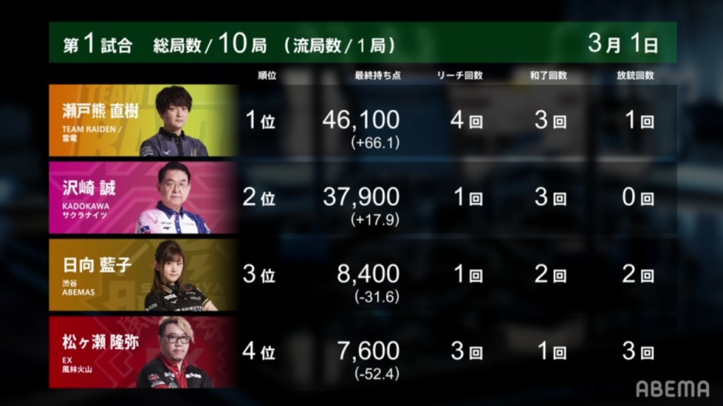 The deal-in from Hinata actually benefited the Shibuya Abemas as well.If the game had ended with the same scores going into South 4, the point difference between Sawazaki and the Shibuya Abemas would be around 80 points. However, despite Hinata losing 12 points from the haneman deal-in, she actually reduced the difference between the two teams to around 50 points.