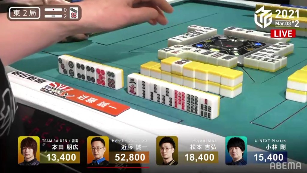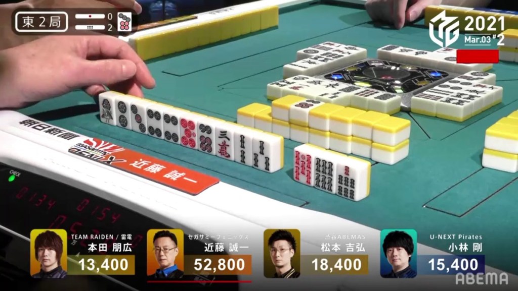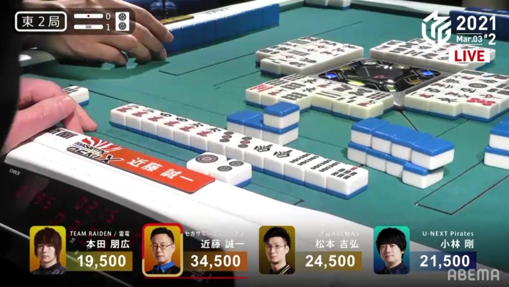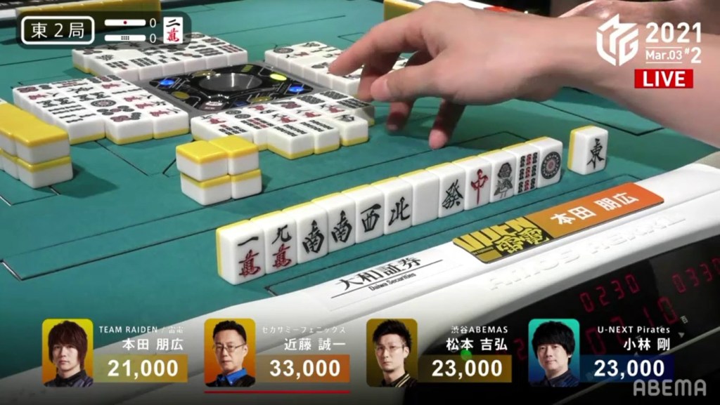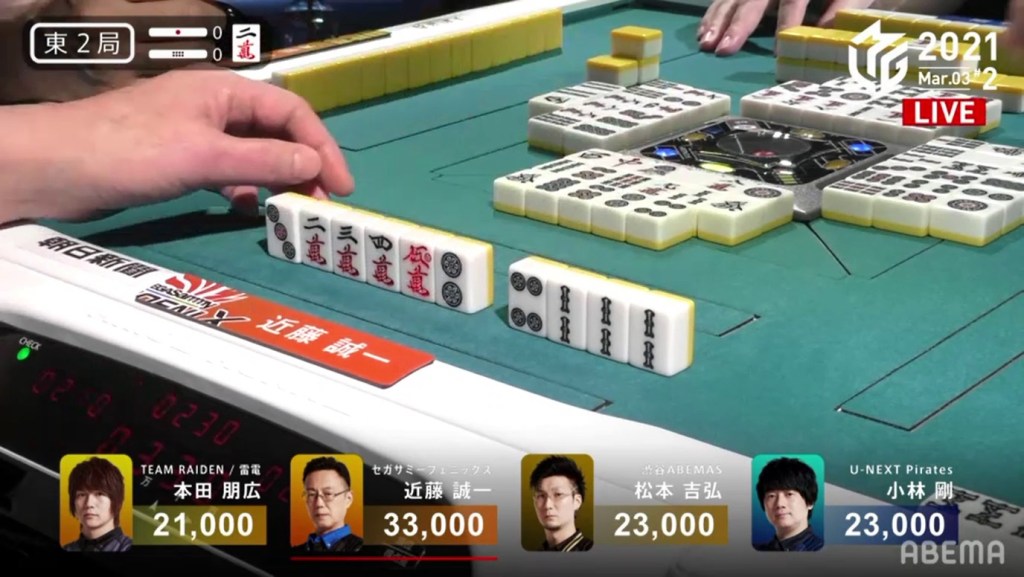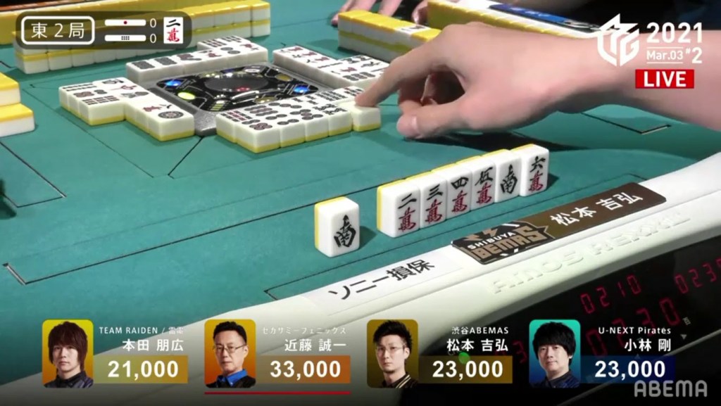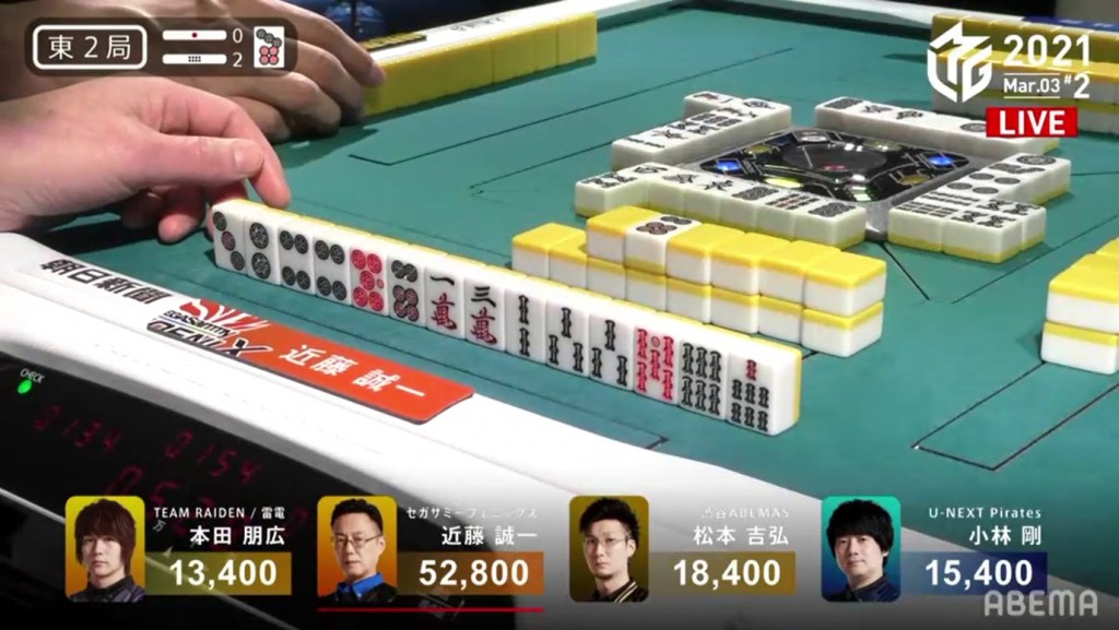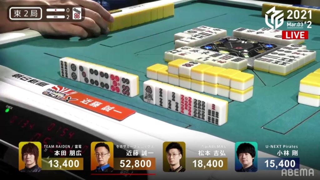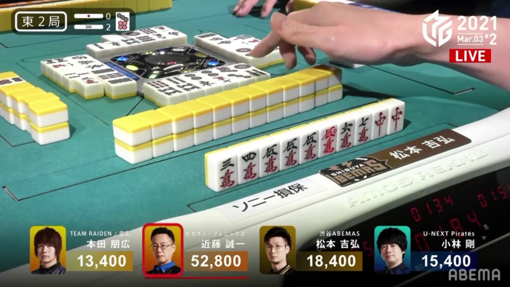 The hand ended in a draw with Kondo and Matsumoto tenpai.