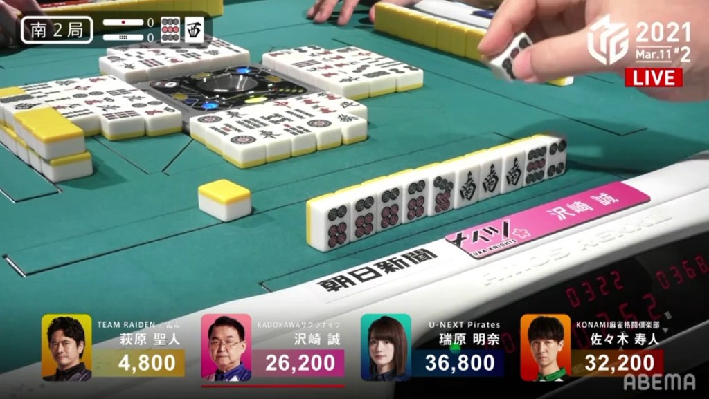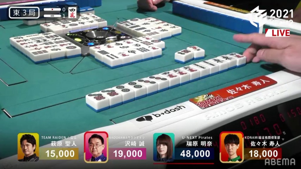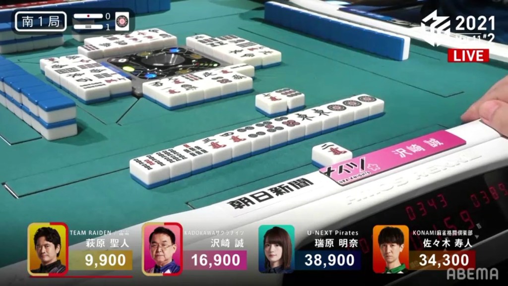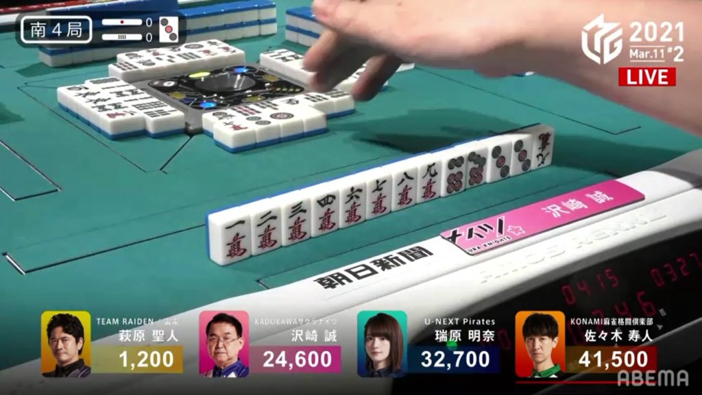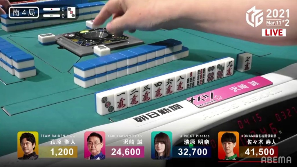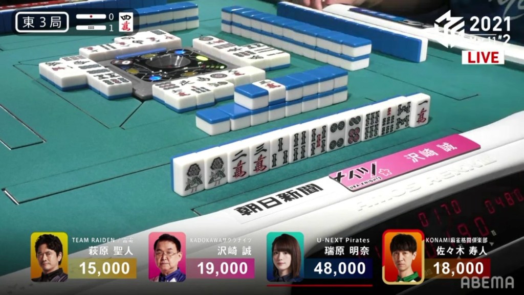 The hand ends in a draw with Sawazaki the only one tenpai, putting him even closer to the lead group.