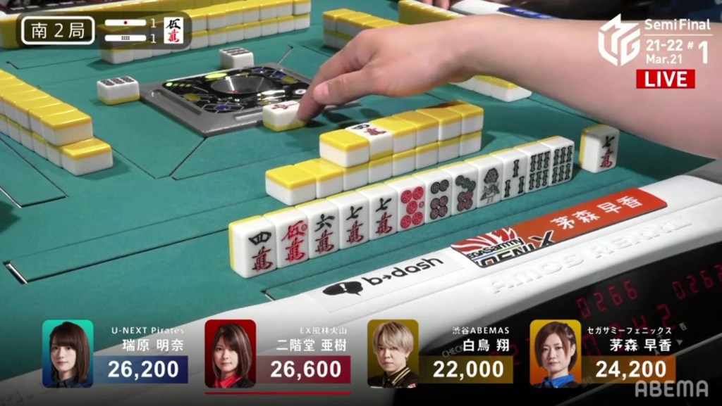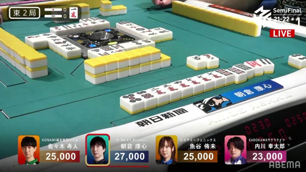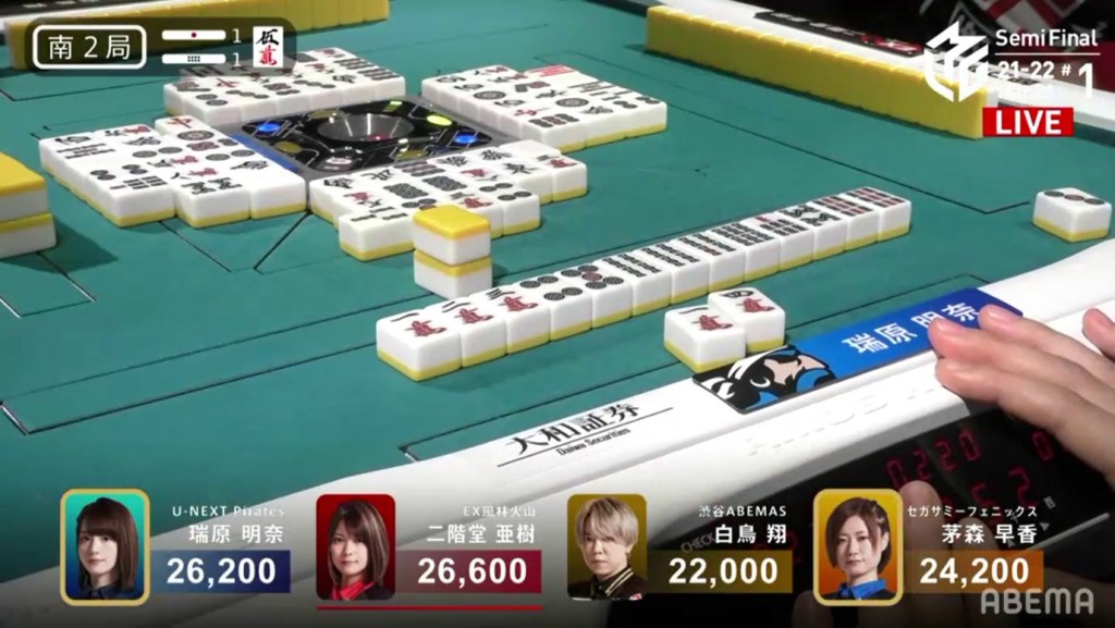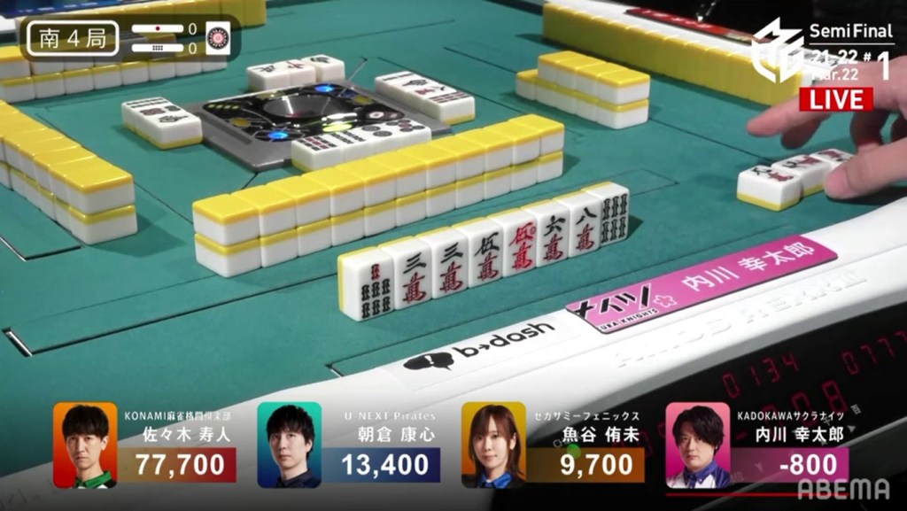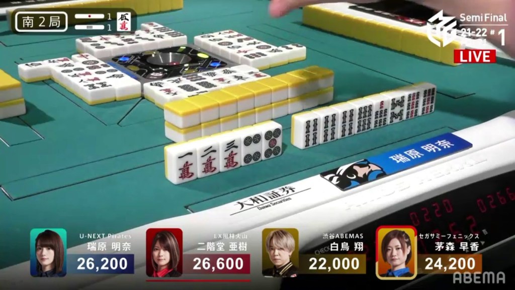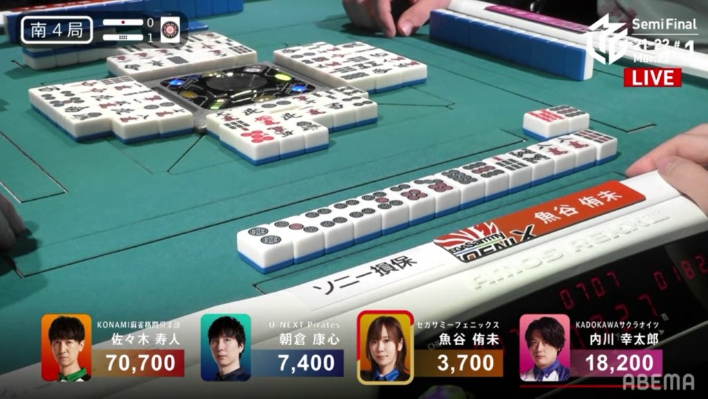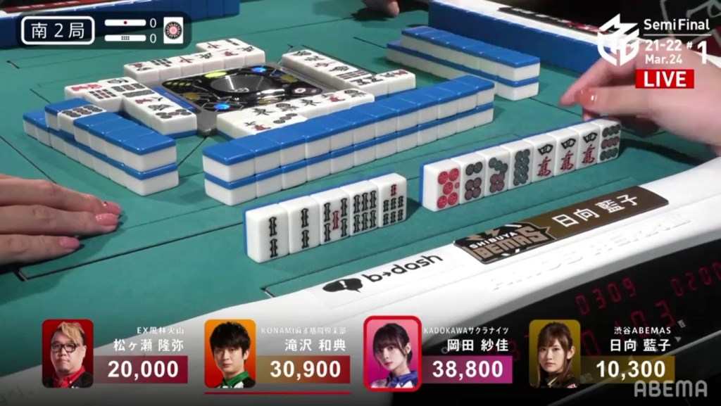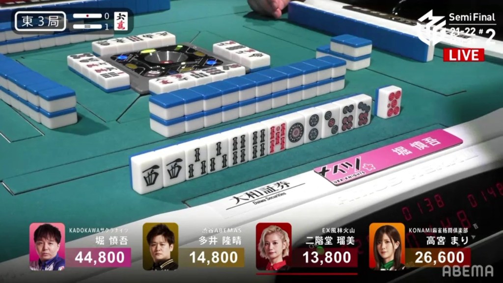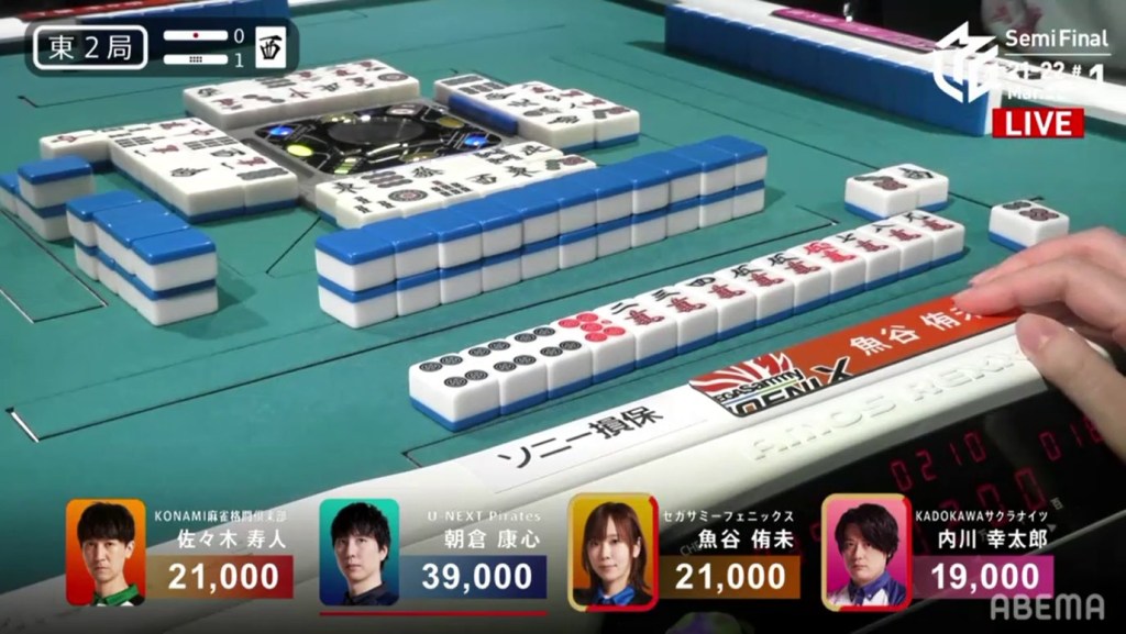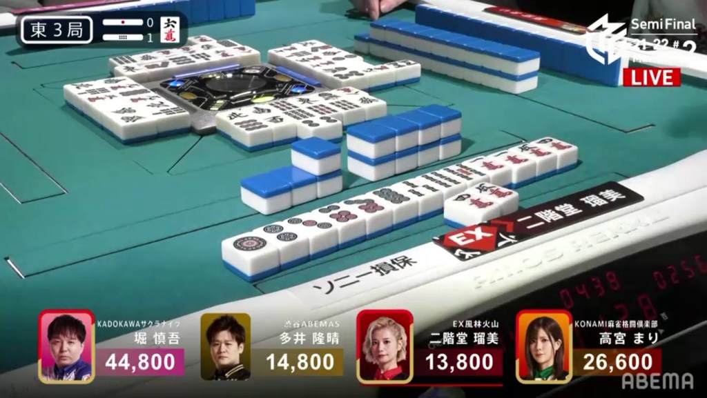 With the hand, Matsumoto brings his score to 40,700, the same score as Kondo and tying them at 1st place. This isn’t the first time this season that two players have tied for 1st. On October 28, 2021, Honda and Hori both ended with 38,000 and tied for 1st place.