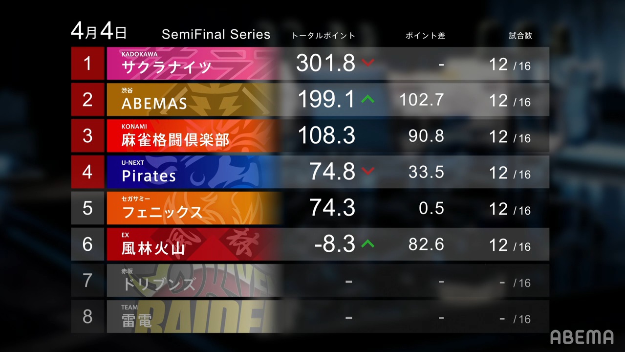 That’s all for this quarter! By the end of the week, we will know our four finalists! Can the Sakura Knights, Abemas, Konami and Pirates hold onto their playoff spots, or will the Sega Sammy Phoenix and EX Furinkazan take them away? Will we see more big hands? More comebacks? More yakuman chances? As always, we’ll just have to wait and see!