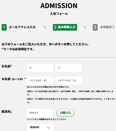 A portion of the M-League Official Supporter registration page. Near the bottom, it requires you to put your prefecture and your address