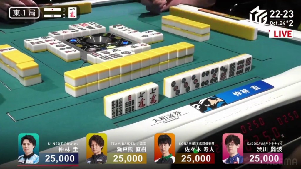 After a few turns of back in forth between the two, Setokuma throws his hat into the ring, staying dama on a 2m/5m shanpon.