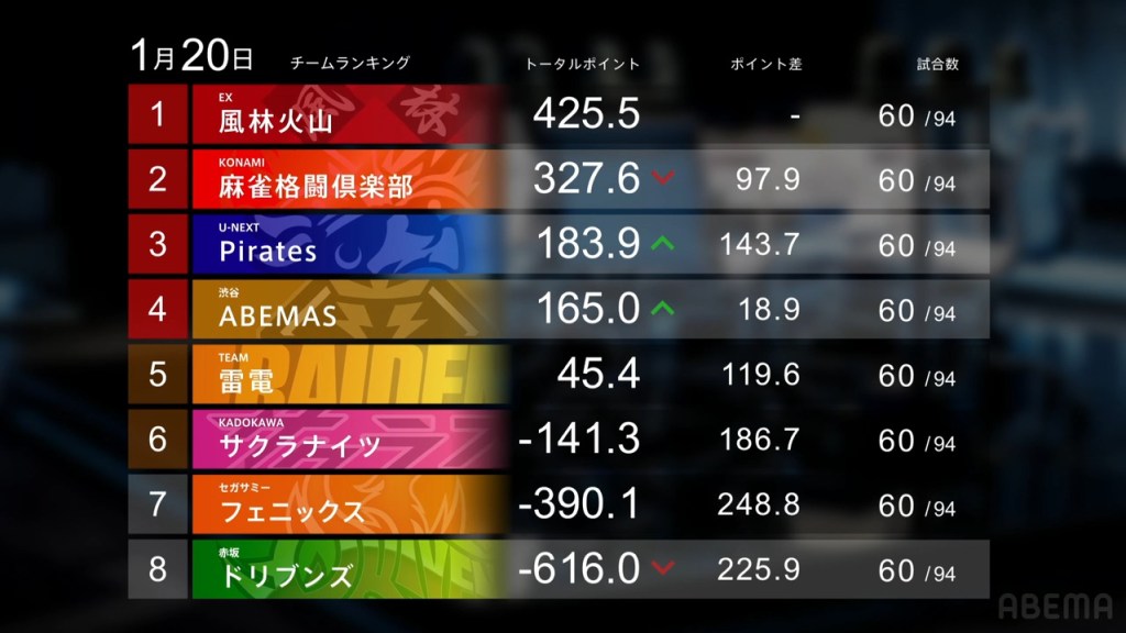 That’s all for this week! We are just under two thirds of the way through the regular season. How will the teams handle this final third? Which of the teams at the top stay at the top? Will the Sega Sammy Phoenix and Akasaka Drivens escape elimination? Will we have more surprise flushes? As always, we’ll just have to wait and see!
