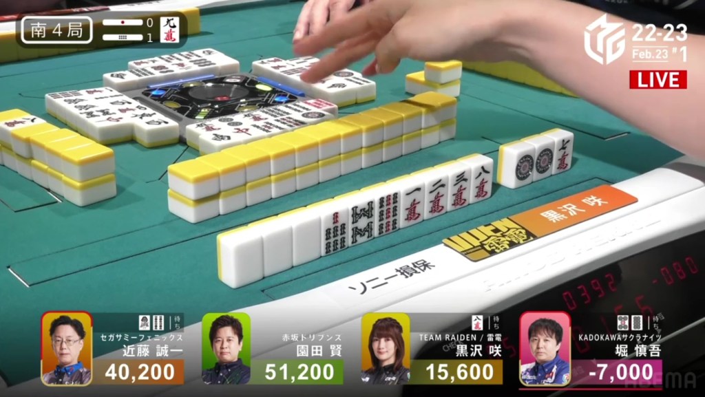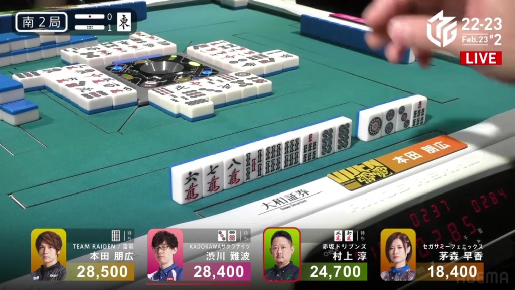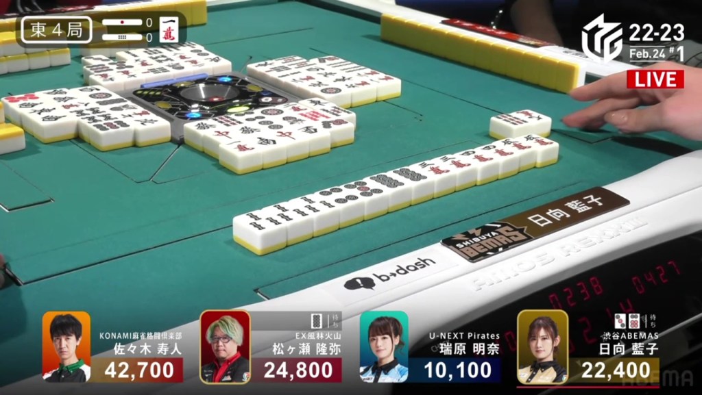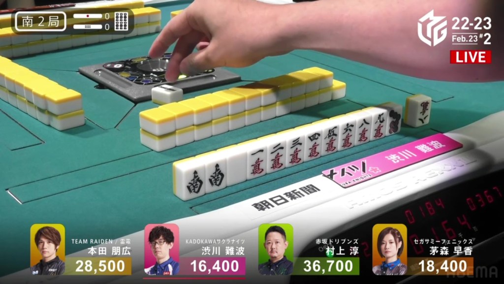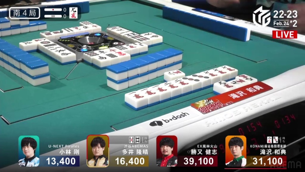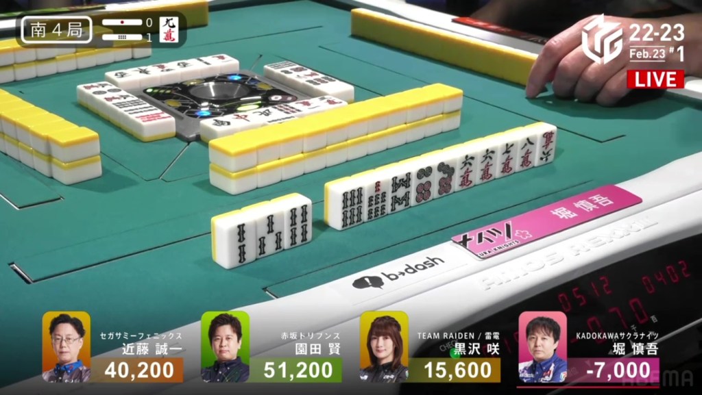 In S4-1, Hori is deep into the negatives at -7,000 after dealing into a mangan in S3-0. However, he does have the last dealership, giving him a chance to make a last-minute comeback. However, he will have to find 22,600 in order to move into 3rd place.