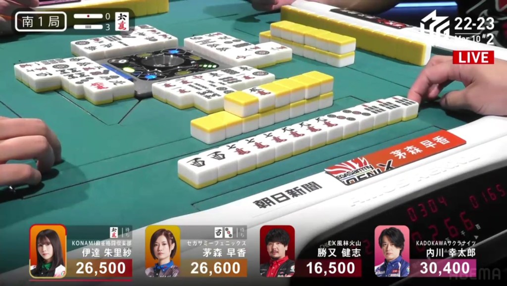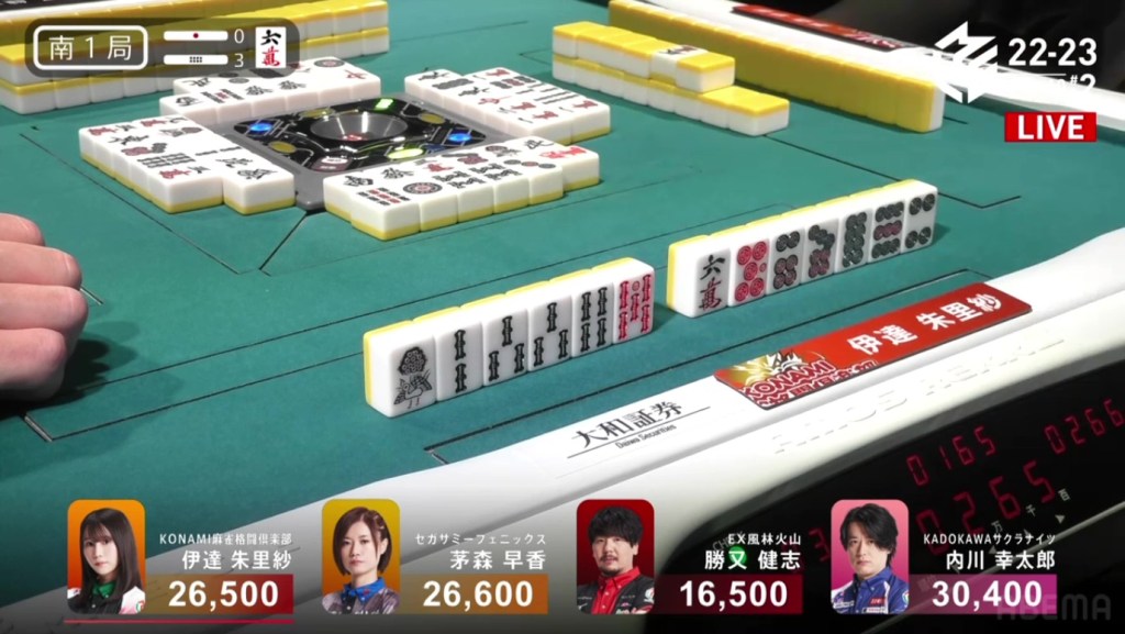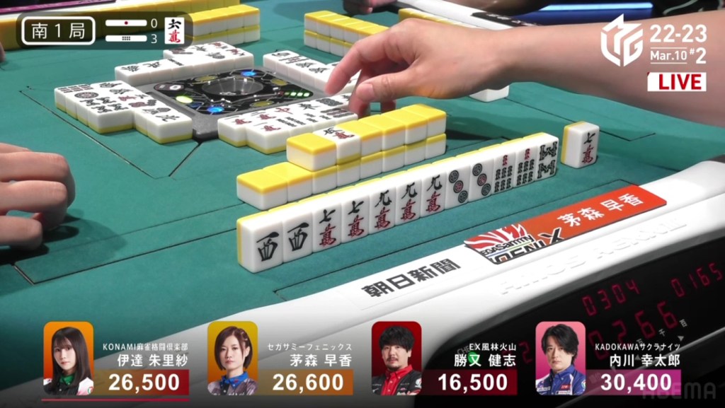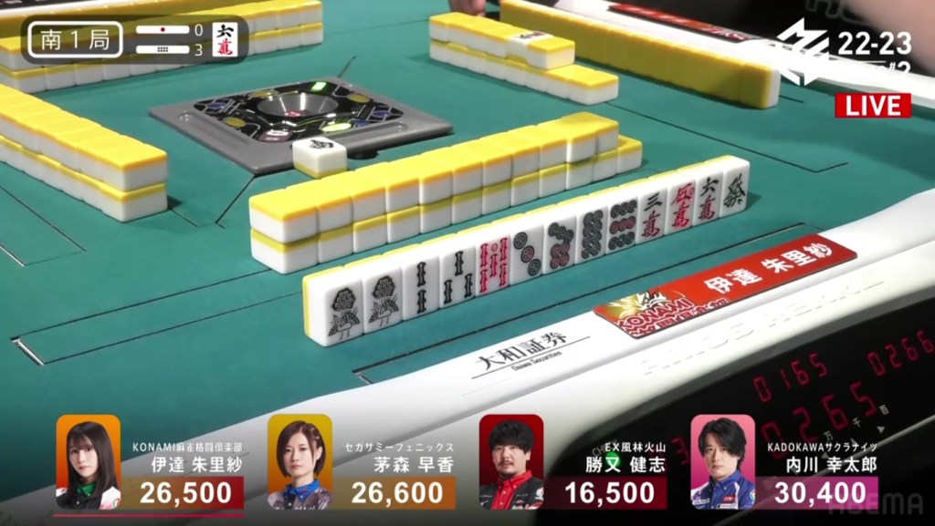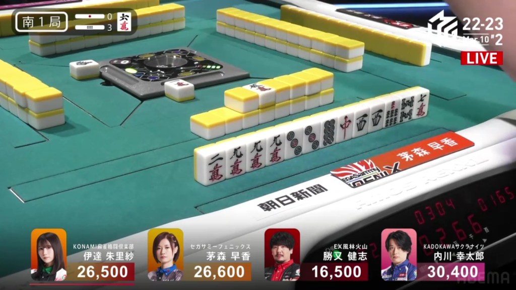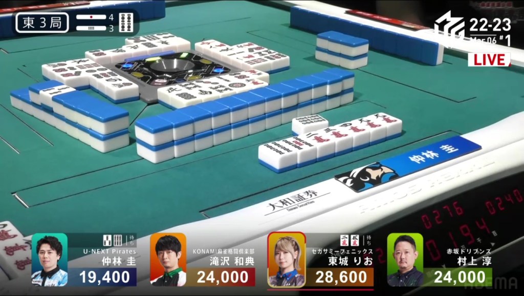 In S3-0, Katsumata is the dealer in 4th place, 6,100 behind 3rd place Date. Though the team isn’t in trouble, getting as many points before the semifinals will give them a slight advantage.