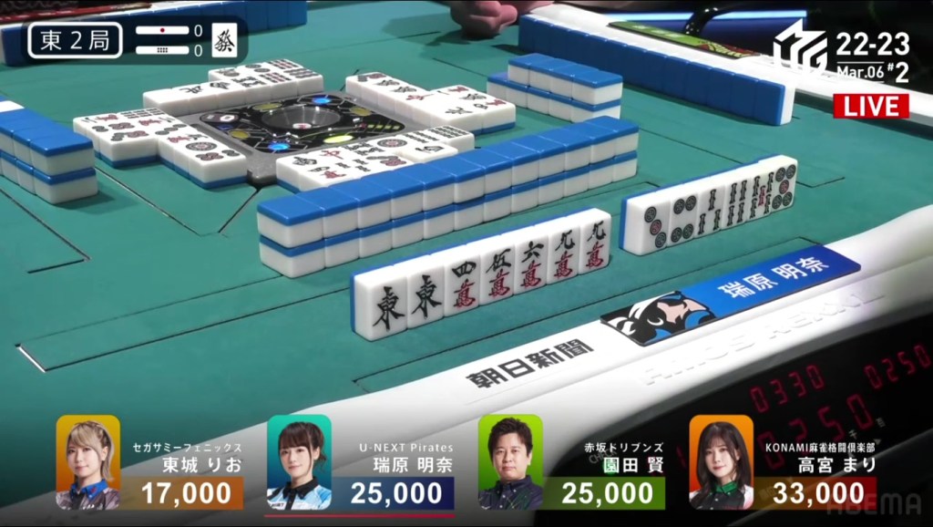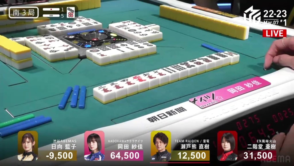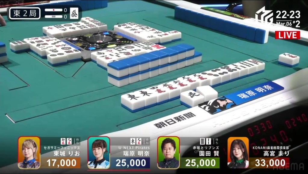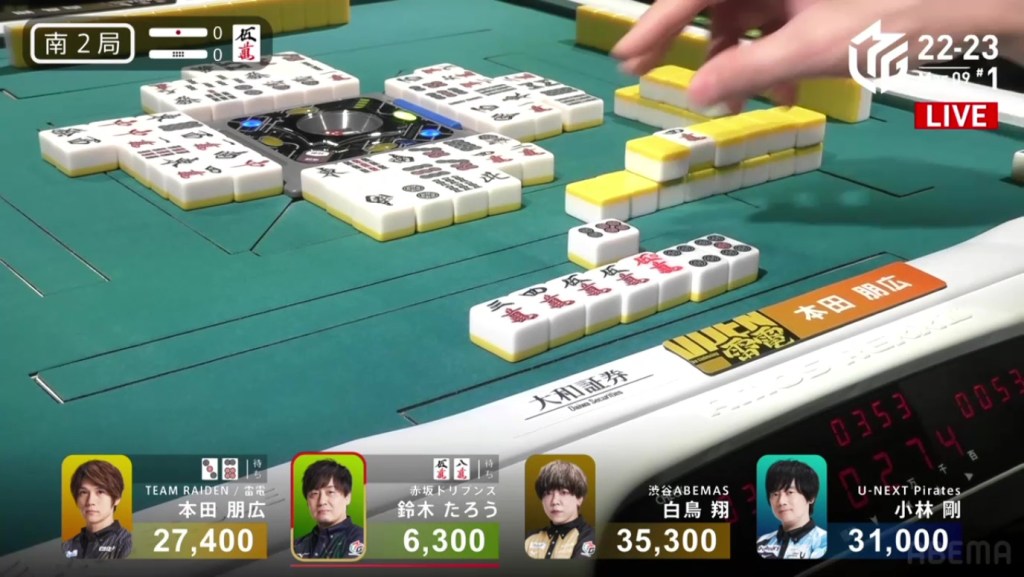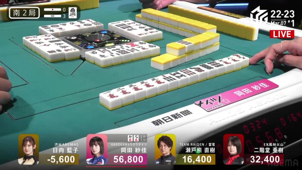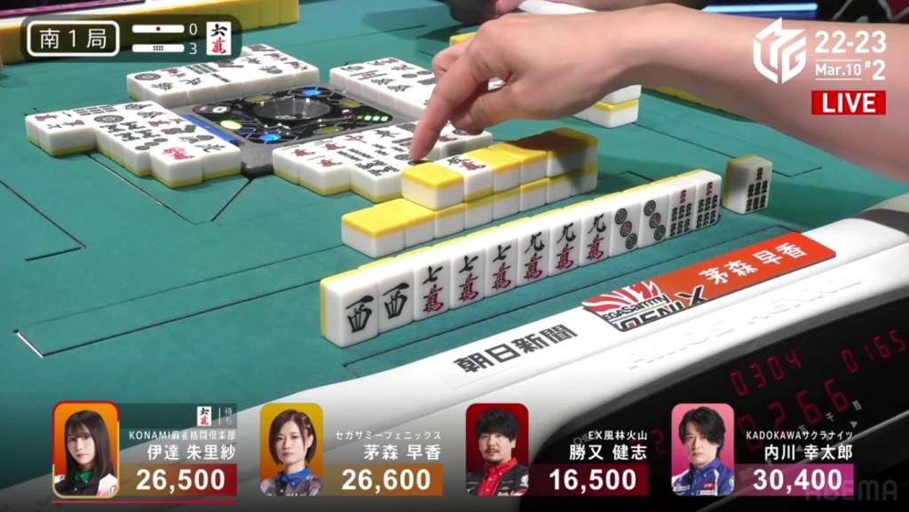 In S3-0, Katsumata is the dealer in 4th place, 6,100 behind 3rd place Date. Though the team isn’t in trouble, getting as many points before the semifinals will give them a slight advantage.