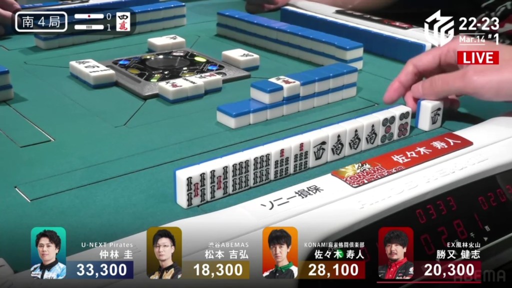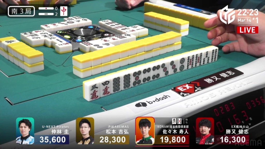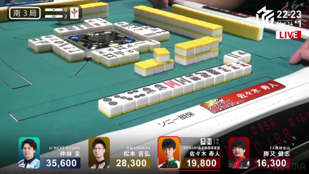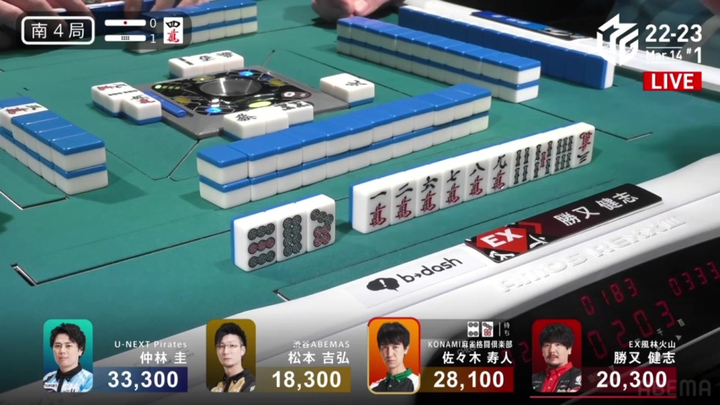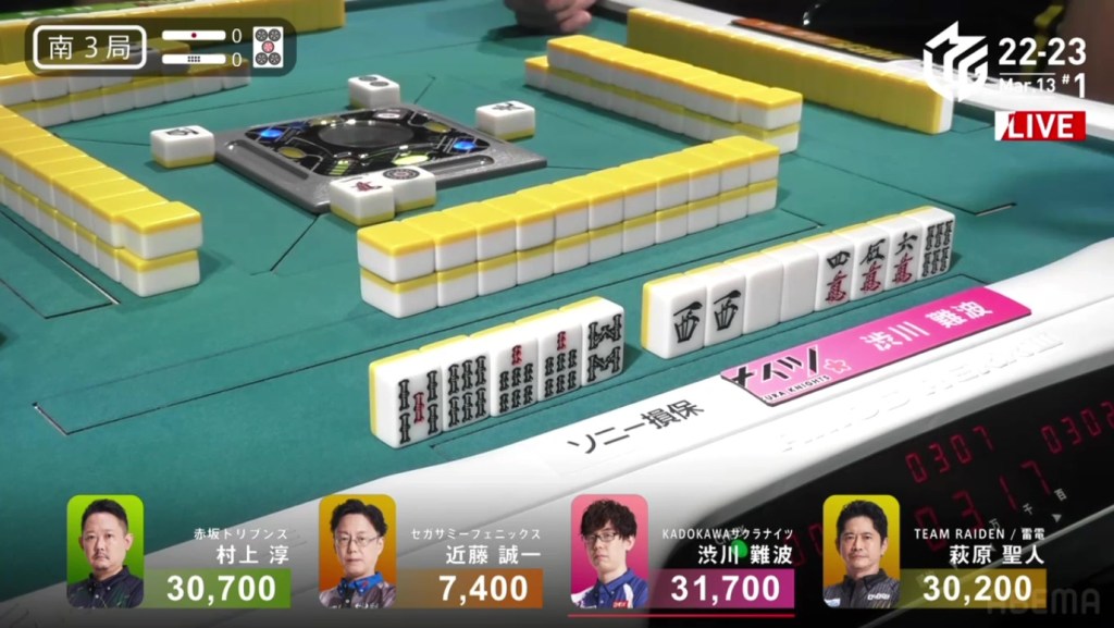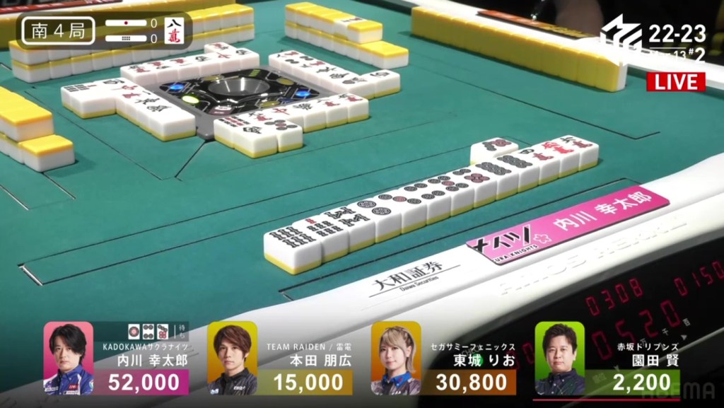 In S3-2, Hisato is the dealer in 3rd place. If he can get a mangan tsumo or a haneman ron, he would move into 1st place.