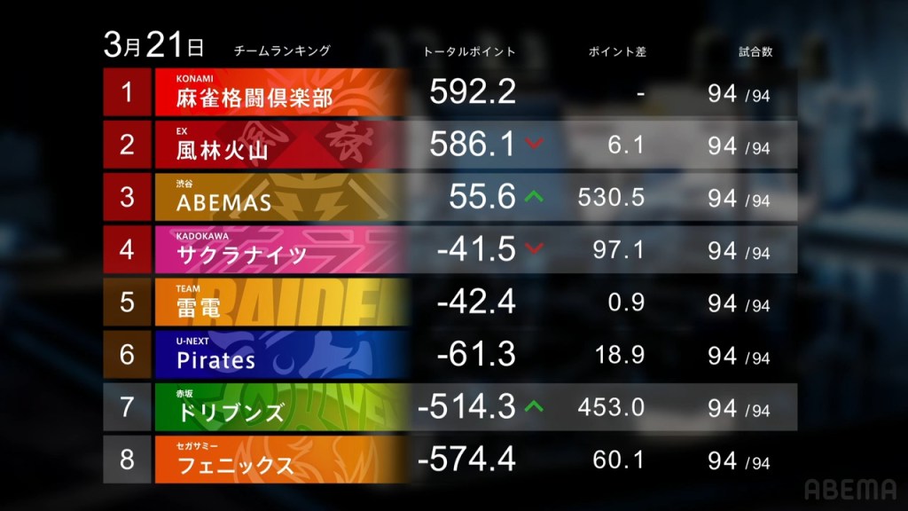 With six teams left, how will it all turn out? Will the rich get richer or will the underdogs make a comeback? Can players who struggled in the regular season shine in the semifinals? Will we get even more yakuman? As always, we’ll just have to wait and see! The semifinals start on April 10 at 19:00 JST. See you then!