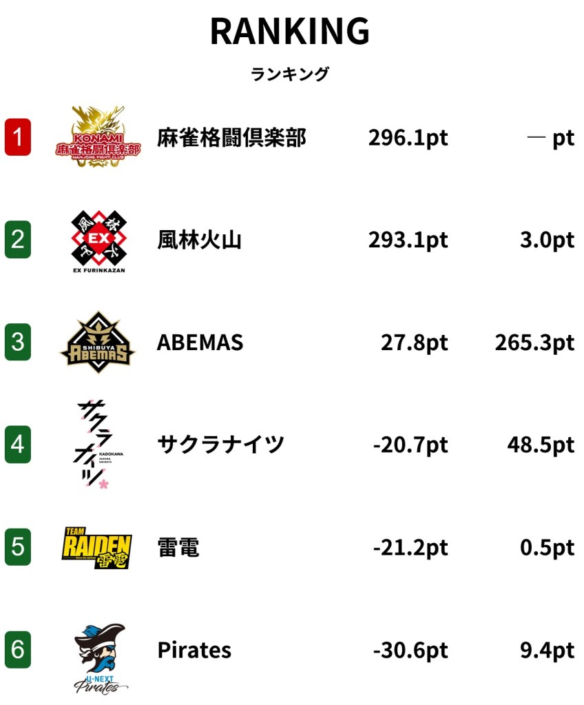 | 3 | Shibuya Abemas | +55.6 | +27.8 |
