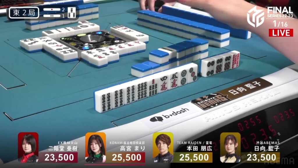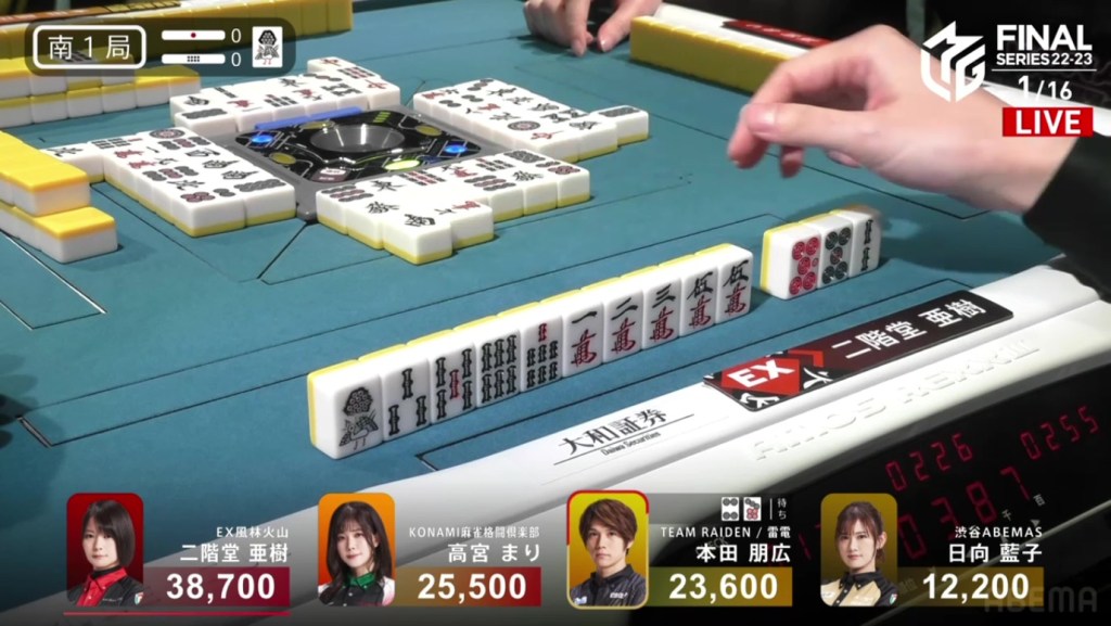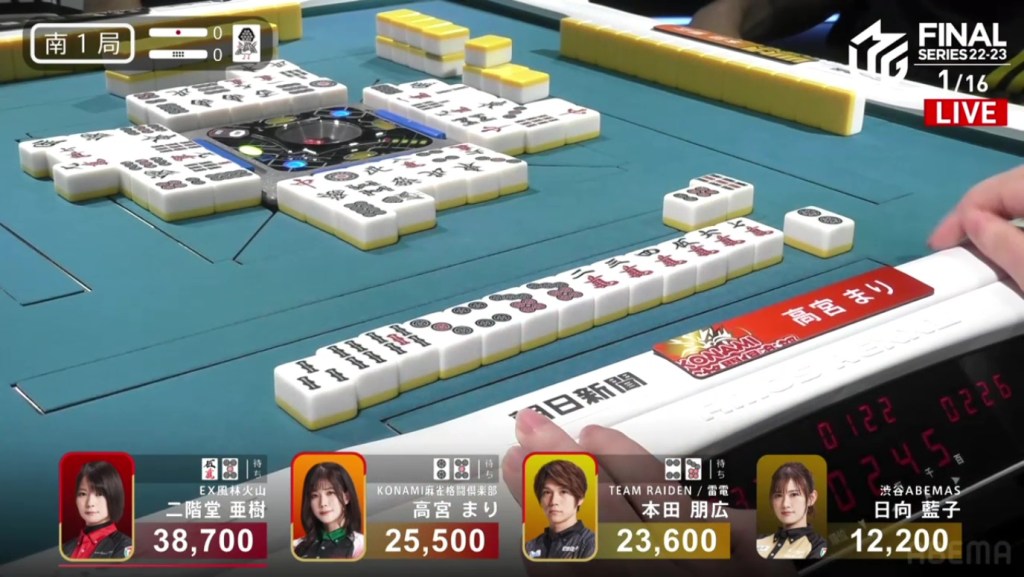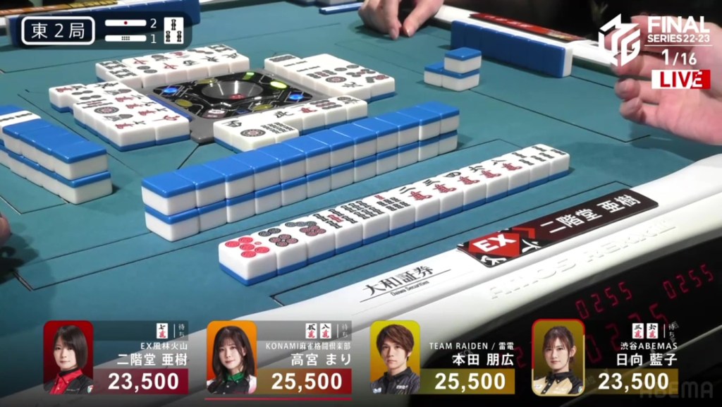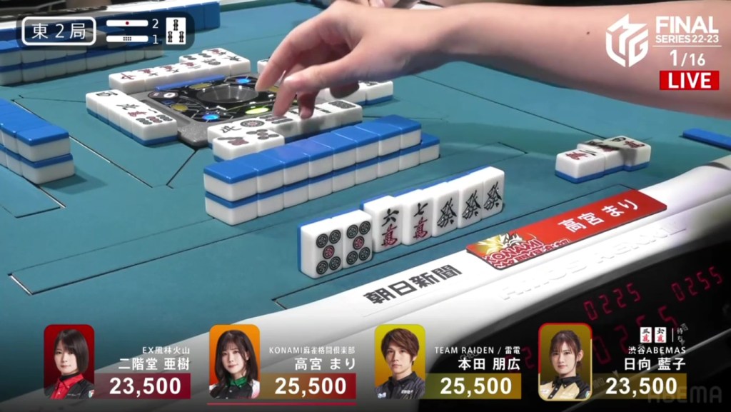 With that single win by Takamiya, the Konami Mahjong Fight Club rise from 4th to close to 1st. For the Shibuya Abemas, they fall down to the familiar 3rd place after Hinata was just unable to win a hand.