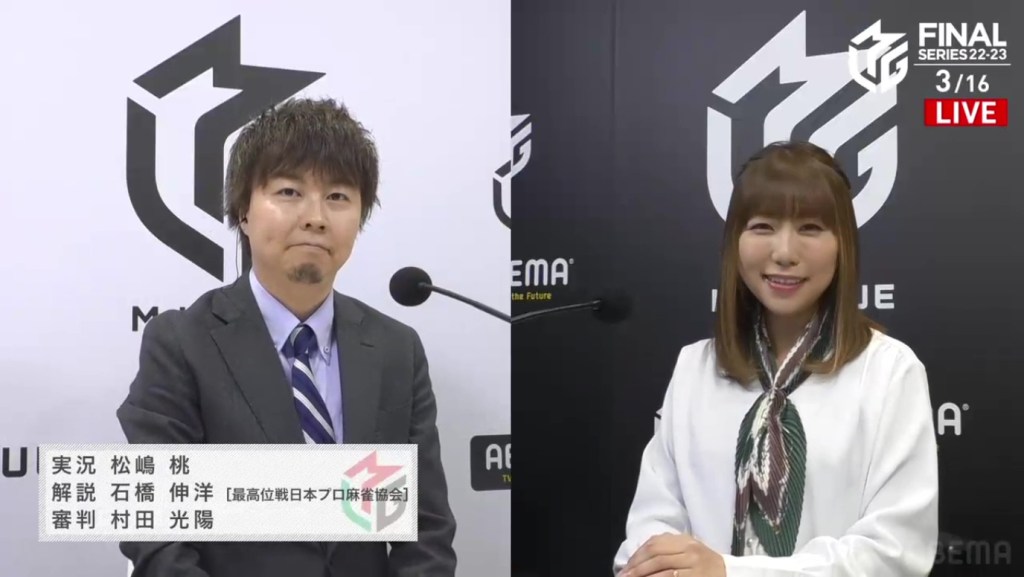 After 30 hands, 35 riichi calls, 4 interviews and almost 5 hours of content, the second day of the M-League 2022-23 Finals has come to a close. With last tile claims and last tile draws, we had moment that seemed hopeless suddenly break expectations. With riichi after riichi, we wondered which player would win the battle. There are so many things that happened today that I can’t fit it all in the introduction, so let’s just get right into it, shall we?