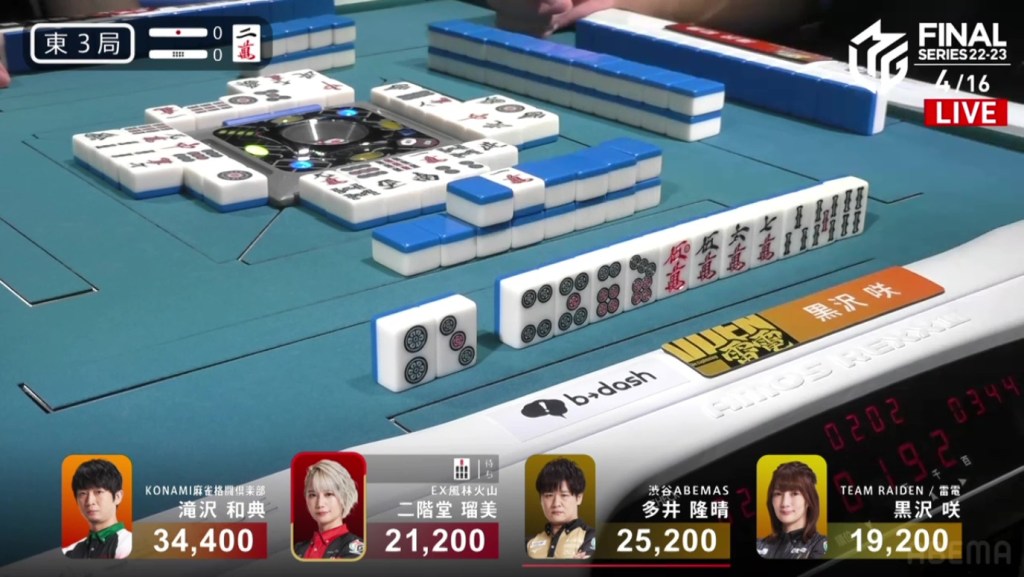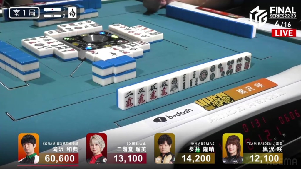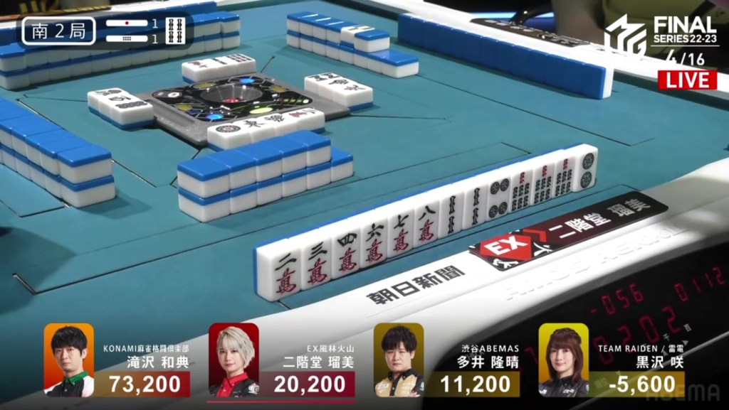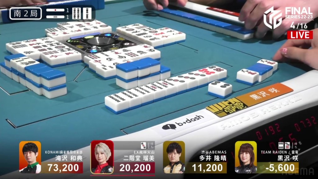 In S2-1, Kurosawa is in the negatives and 16,800 behind 3rd place. If she wants to pose a bigger threat to the other teams, she will need to win at least a limit hand to get within striking range.