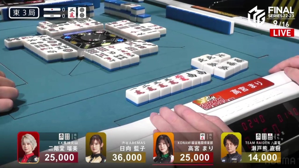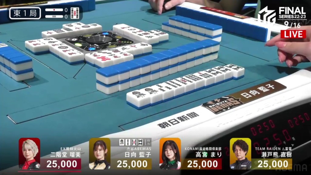 In E1-0, Hinata is the starting south seat and wanting to extend the Shibuya Abemas’ lead.