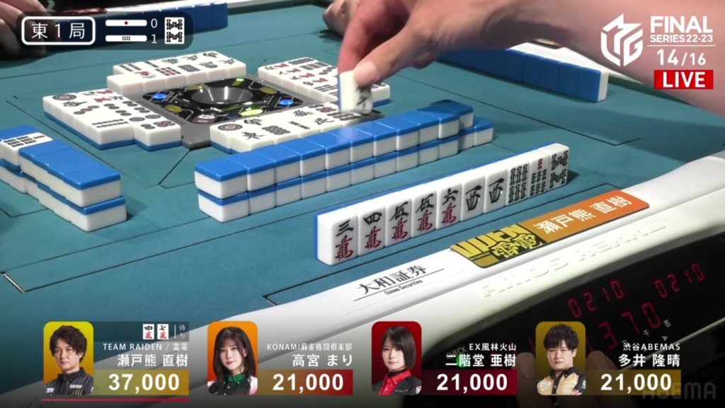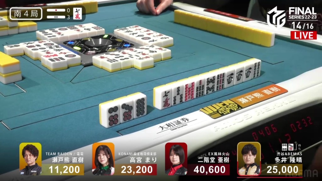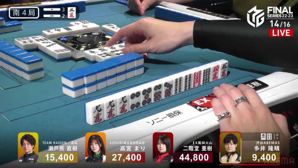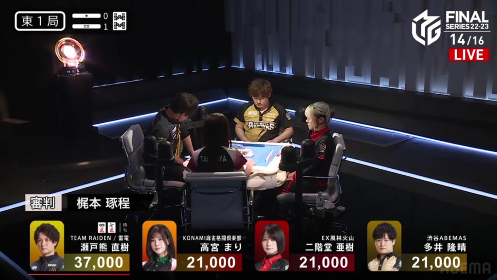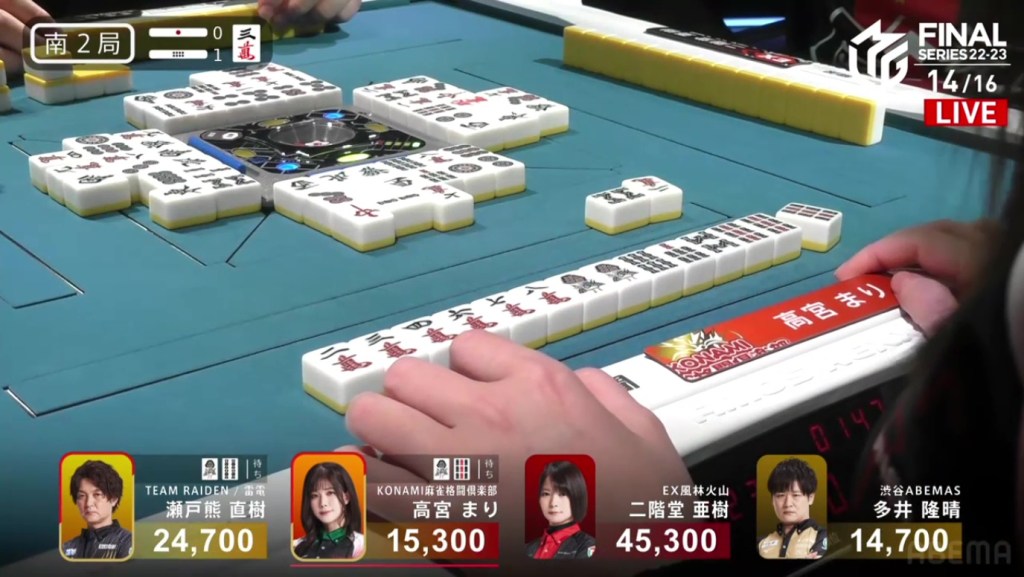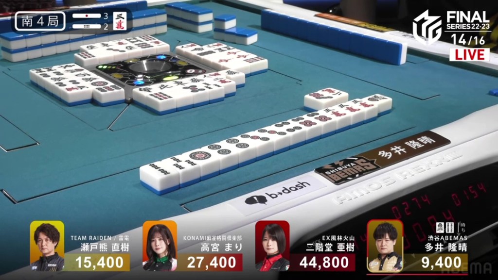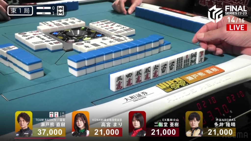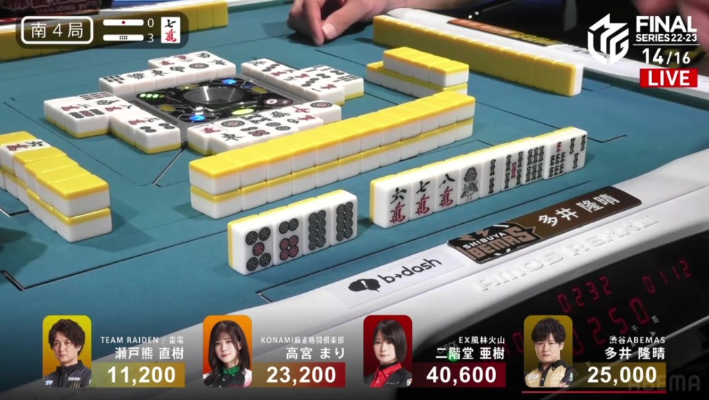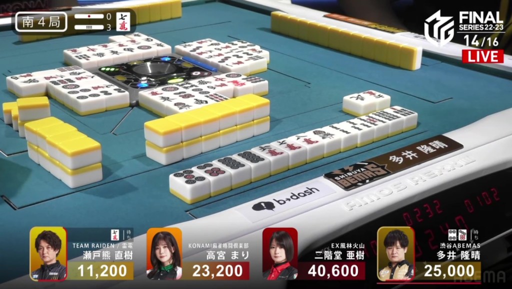 With Aki’s win, this is the team’s first win of the finals. With Team Raiden getting a 4th, the EX Furinkazan are now closer to the money. Ooi’s incredible comeback in South 4 removed any doubt of the Shibuya Abemas’ final placement. As long as disaster doesn’t strike, they will finally escape the 3rd place curse. But, anything can happen in a single day.