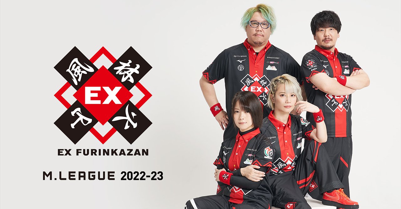 The EX Furinkazan have changed their uniform quite a bit, with their logo now sported on their right shoulder. On the front, the letters “EX” are written in stylized brushstrokes and the word “FU-RINKAZAN” printed beside it. In addition, the team also has more sponsors on their uniform, including the online riichi game “Riichi City“.