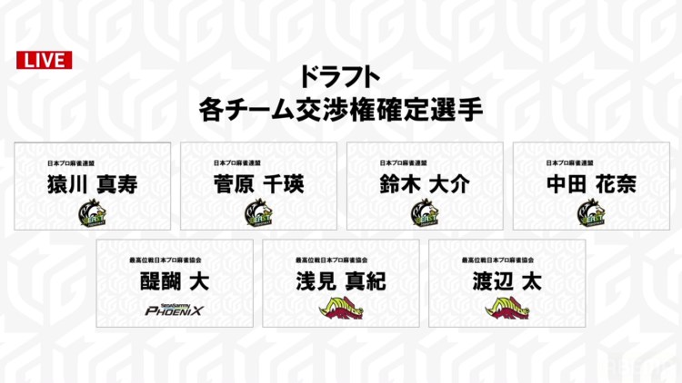 In the weeks following, the other four teams (Team Raiden, Konami Mahjong Fight Club, Shibuya Abemas and U-Next Pirates) all announced that they would be keeping their players. All eight announcements were conveniently compiled in an M-League Twitter Thread.