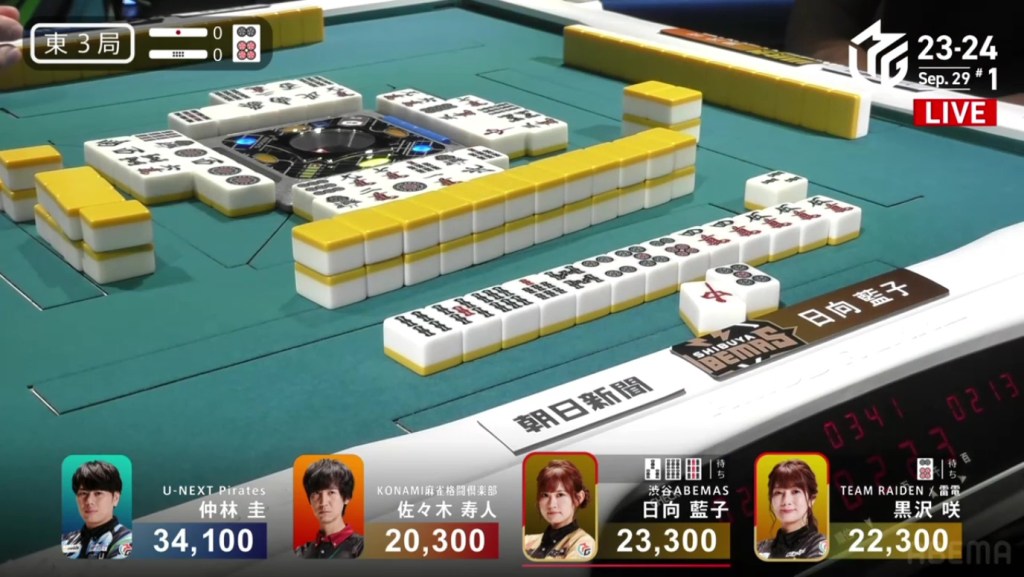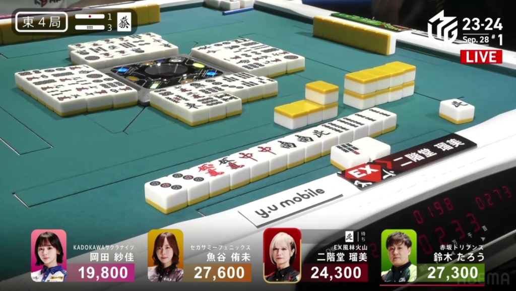 On September 27, Rumi celebrated her birthday. On September 28, she plays in M-League. In E4-3, she is currently in 3rd place, 3,300 behind 1st.