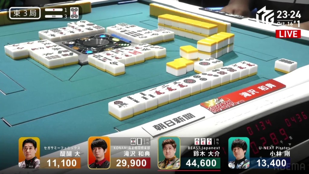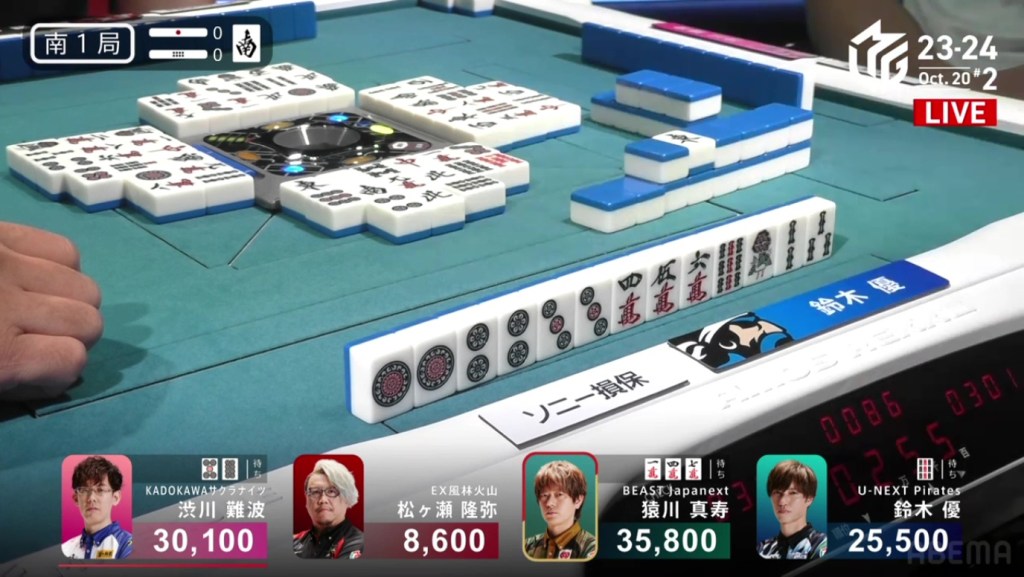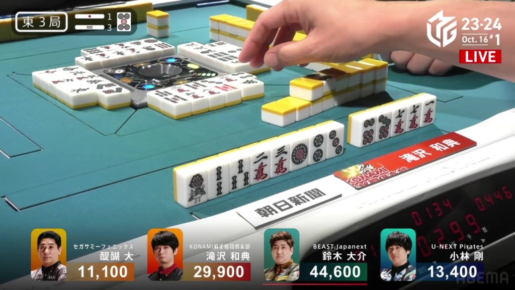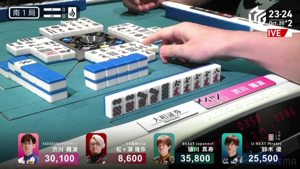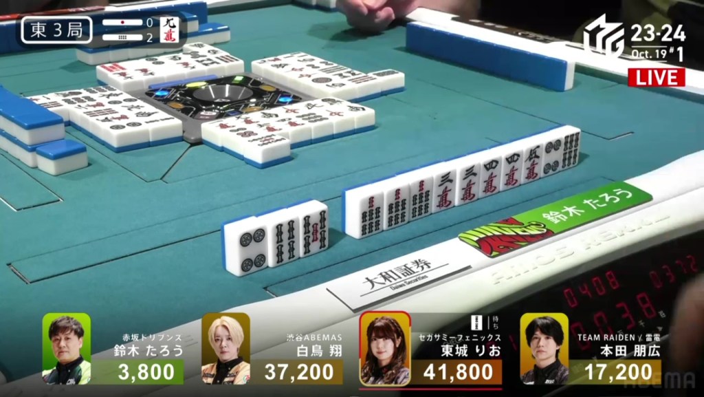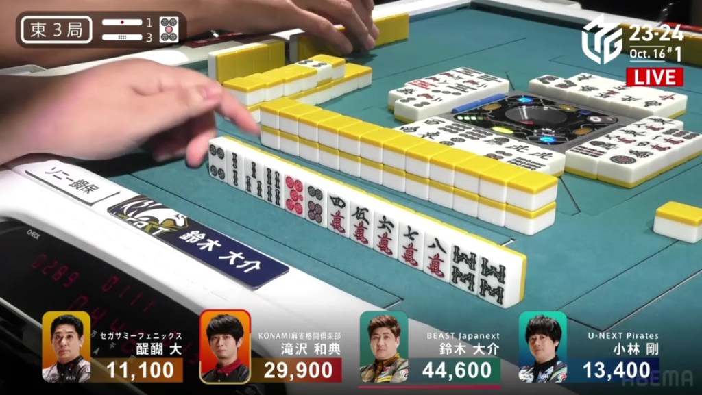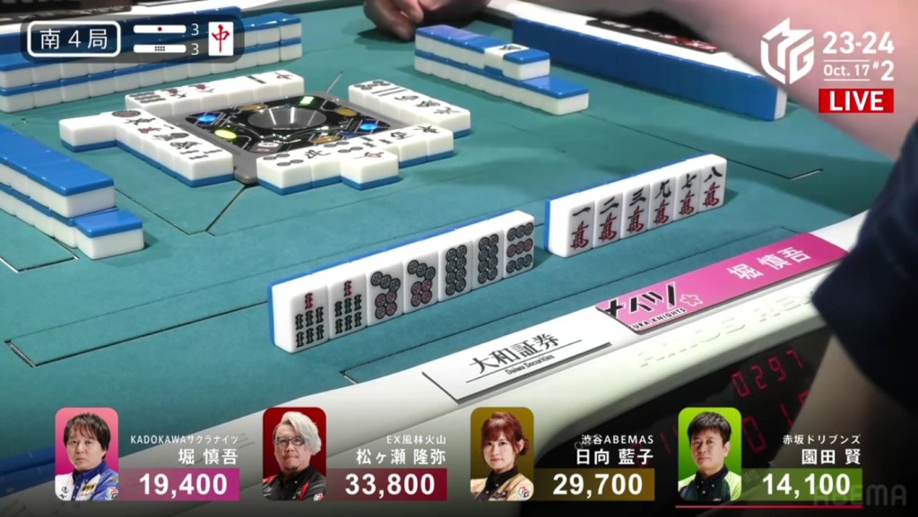 In just two hands, Sonoda was able to go from 4th place with 14,100 to 1st place with 50,200.