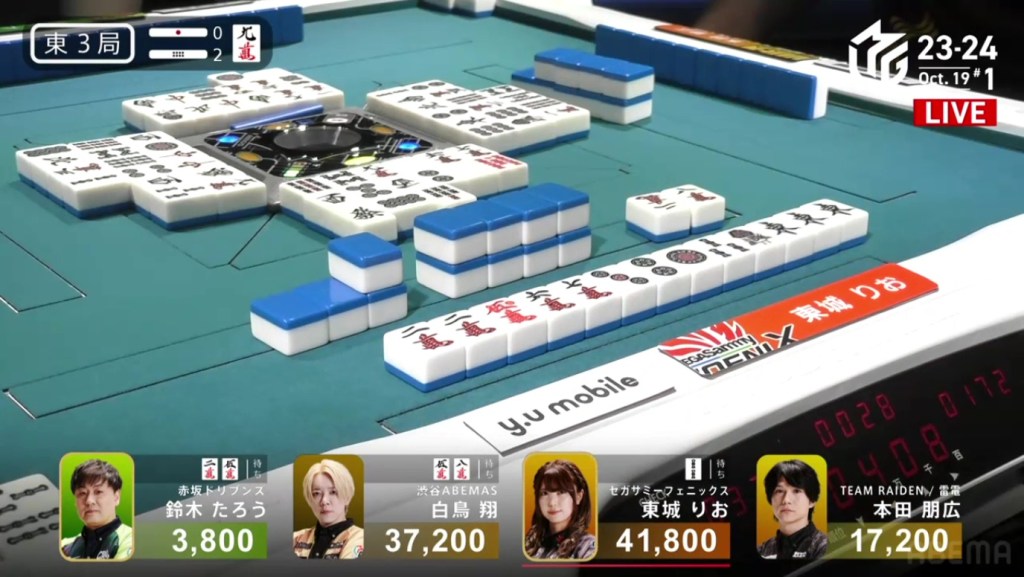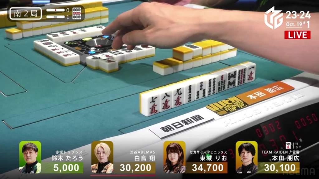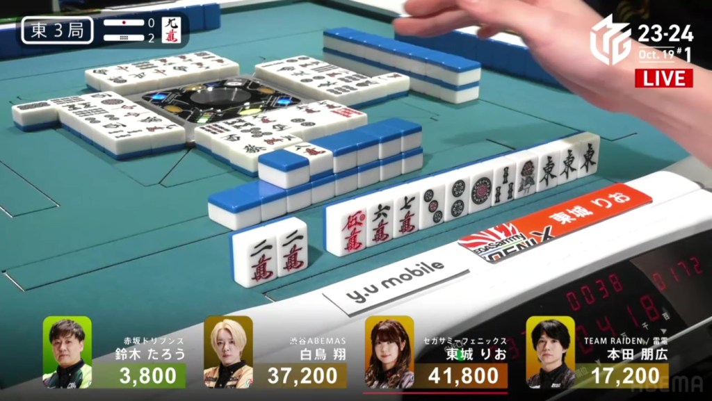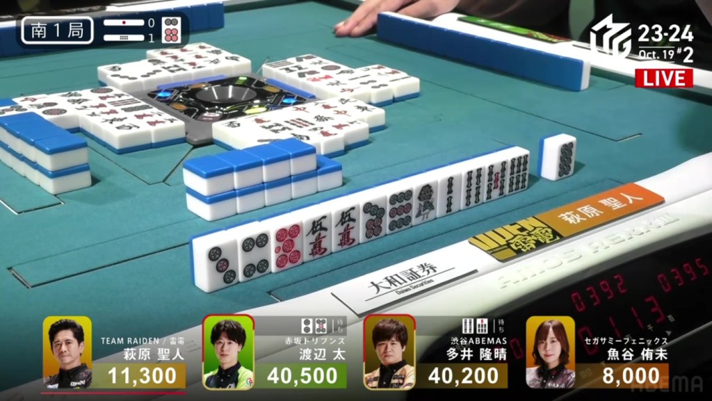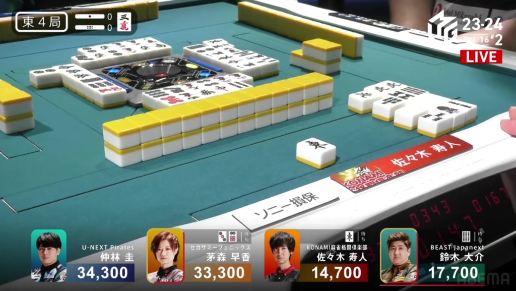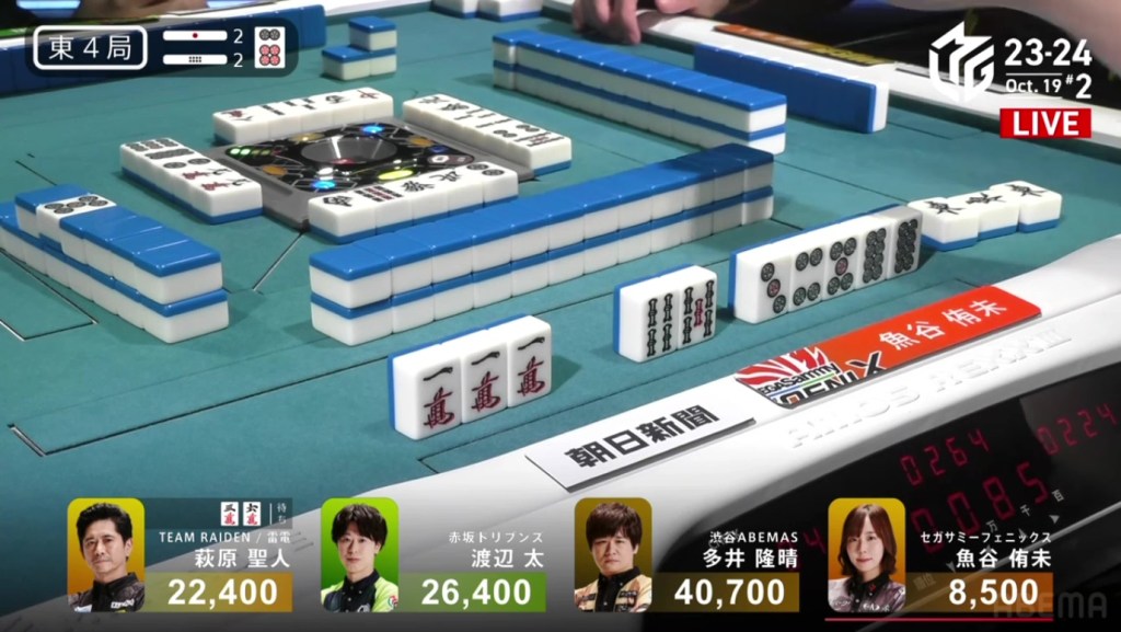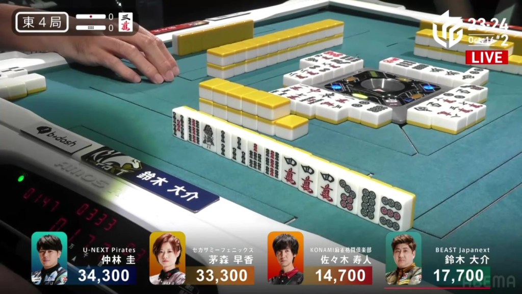 In just two hands, Sonoda was able to go from 4th place with 14,100 to 1st place with 50,200.