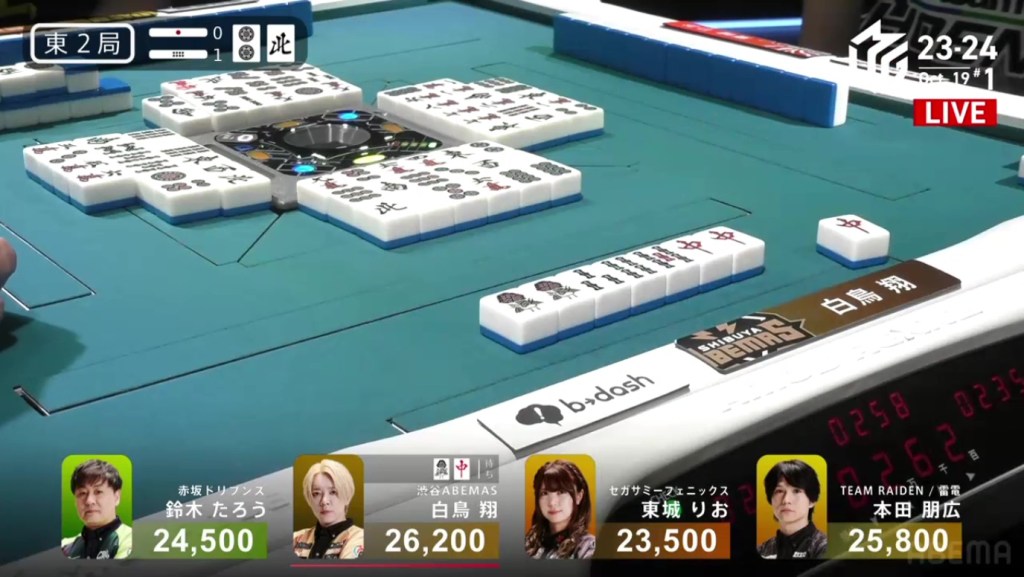 In E2-1, Shiratori is the dealer in 1st place, trying to extend his narrow 400 lead and hoping to get the team out of the triple-digit negatives.