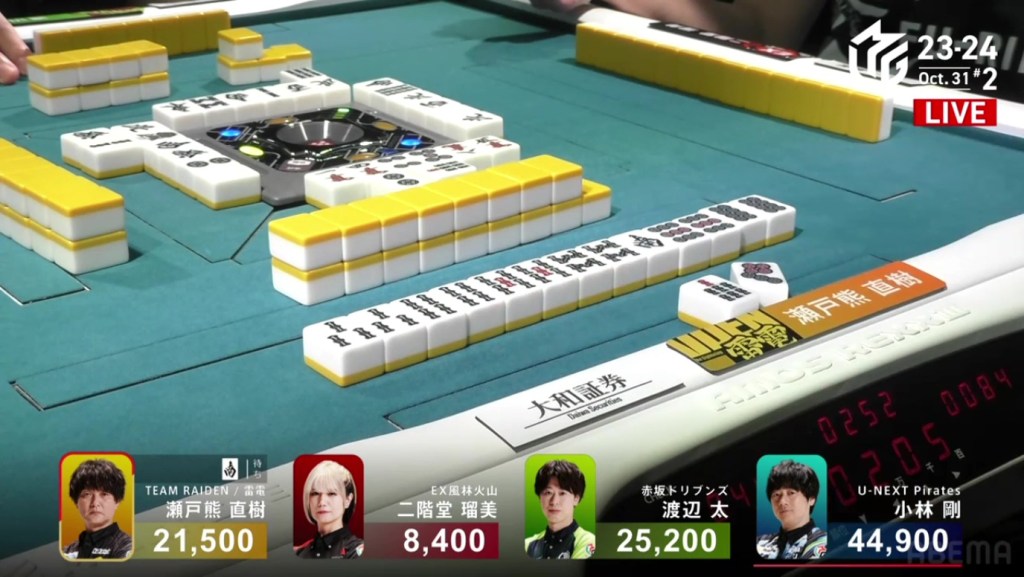 In E2-2, Shiratori is the dealer and has a narrow 4,400 lead over the rest of the pack.
