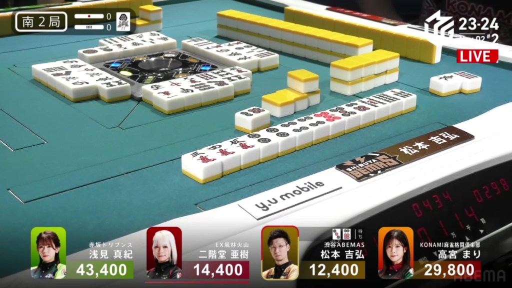 In S2-0, Matsumoto is in 4th place, 2,000 behind 3rd place dealer Aki, 17,400 behind 2nd place Takamiya and 31,000 behind 1st place Asami.