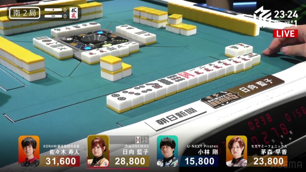 In S2-0, Hinata is now the dealer and just 2,800 behind 1st place Hisato.