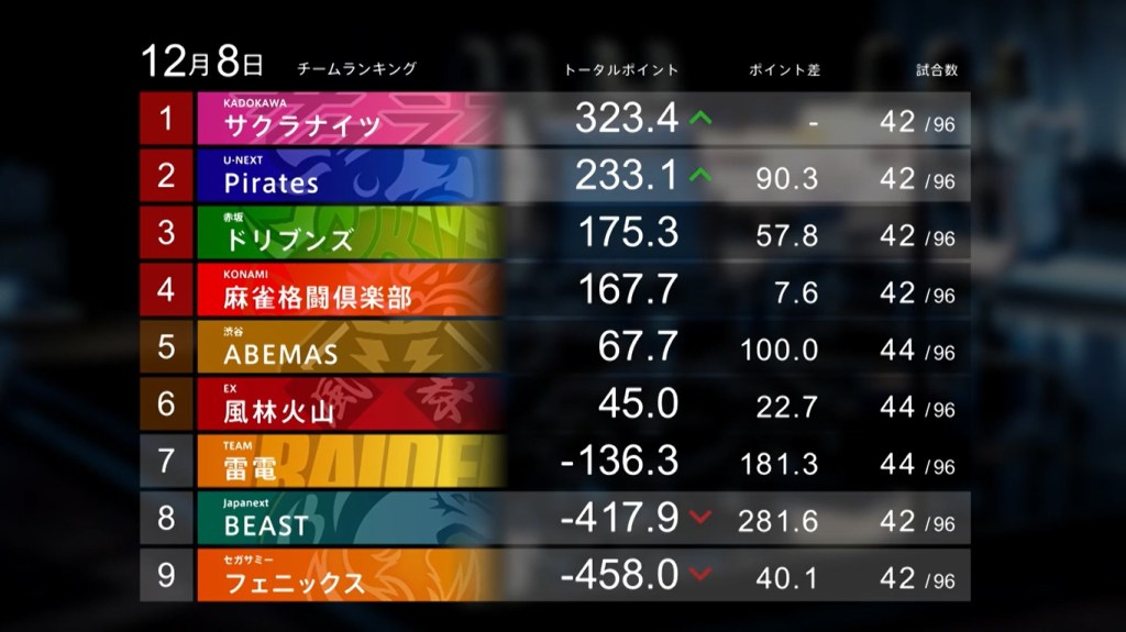 And that’s all we have for this week! We are halfway through the month and next week is our last full week of games. Who will top the standings? Can the Akasaka Drivens keep their position? Can the Beast Japanext start roaring back? Will a yakuman finally be won? As always, we’ll just have to wait and see!