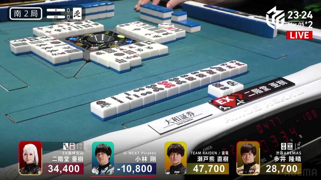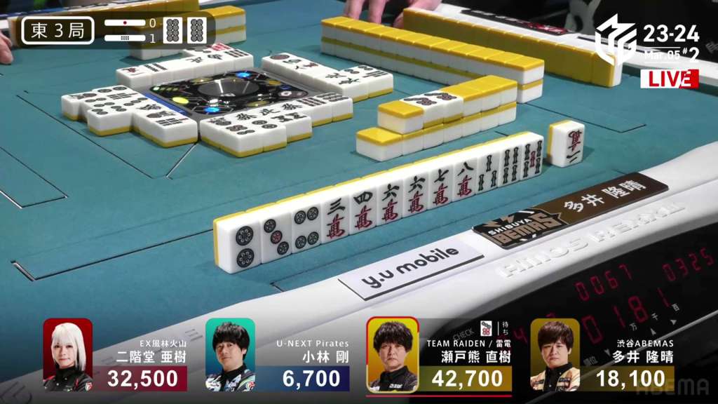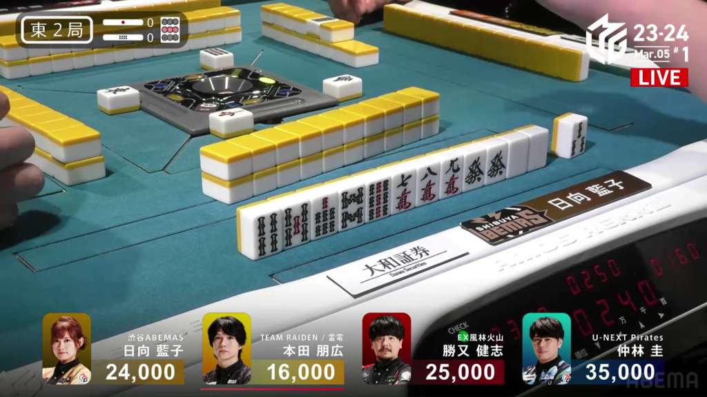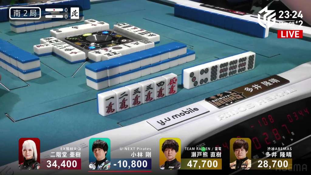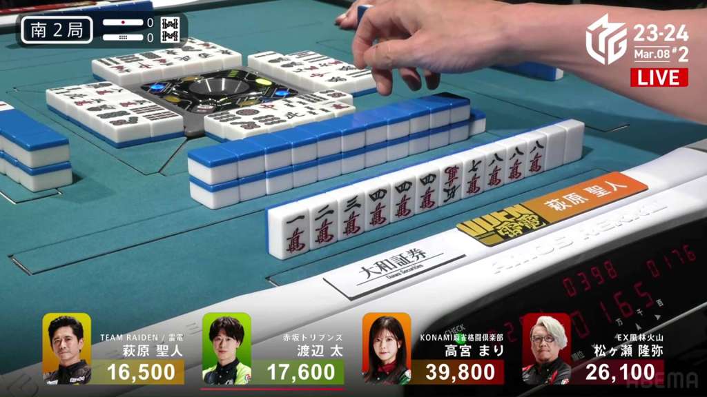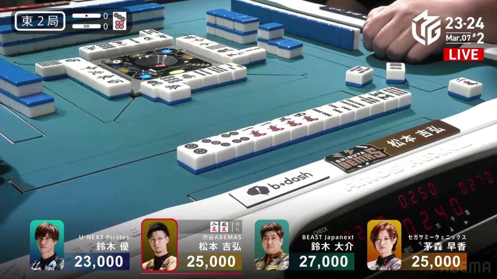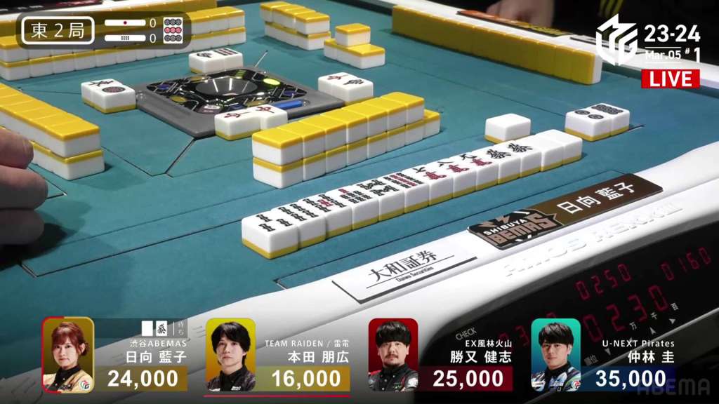 In E2-0, Matsumoto is the dealer in 2nd place, sitting in this season’s lucky south seat.