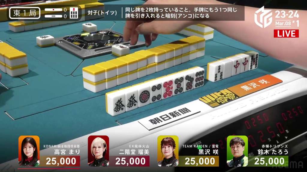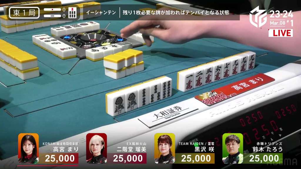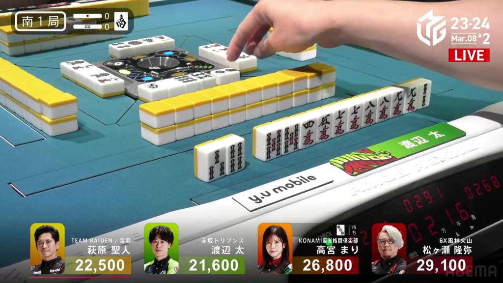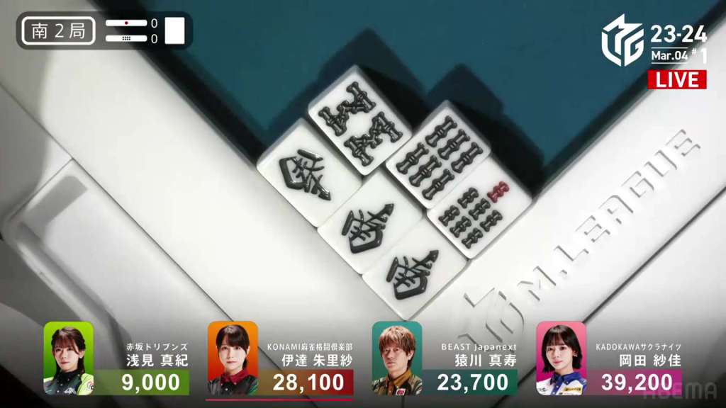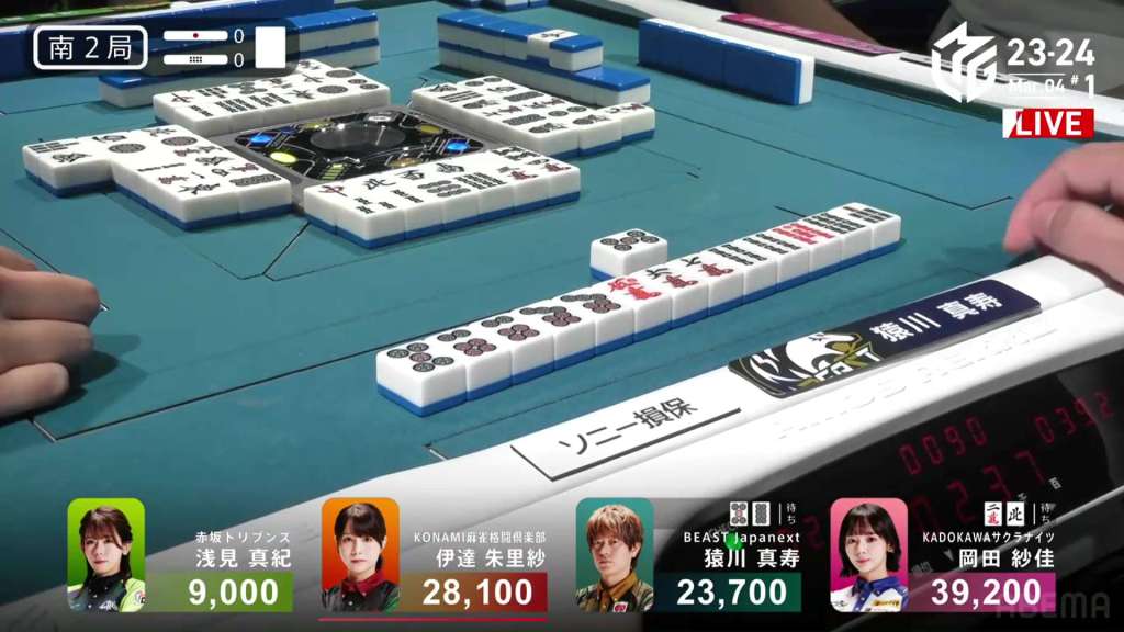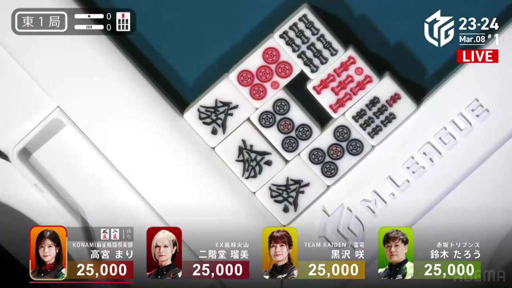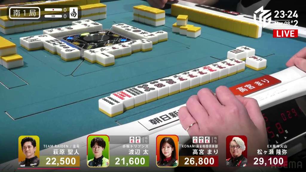 In E2-0, Matsumoto is the dealer in 2nd place, sitting in this season’s lucky south seat.