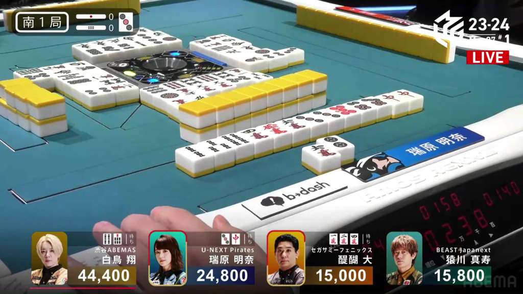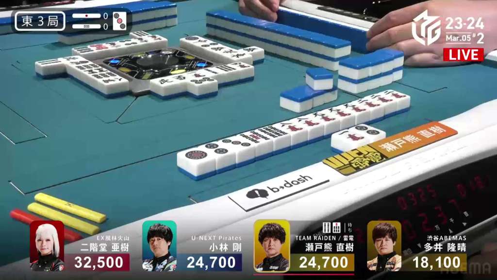 In S3-0, Setokuma is back in the dealer seat and holding a shrinking lead.