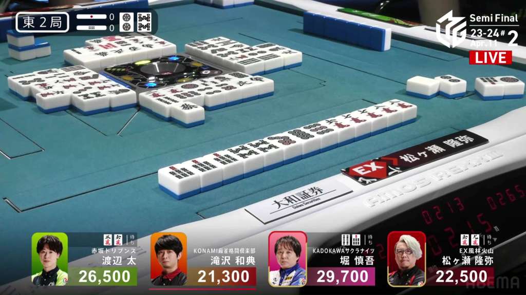 In E1-0, Matsumoto is the starting dealer and carrying the momentum from Hinata’s win to start the semifinals.