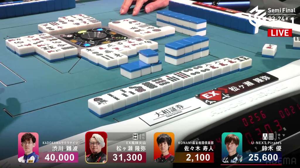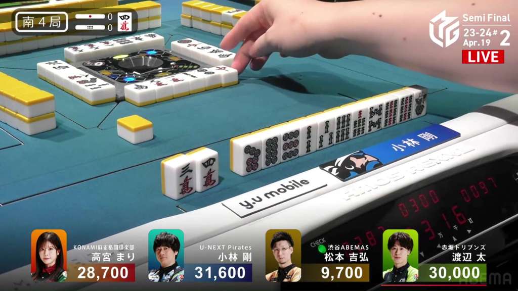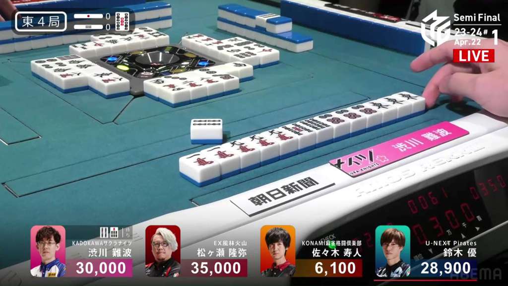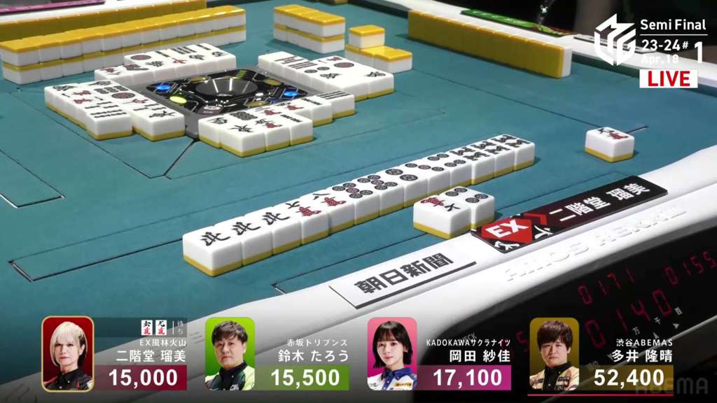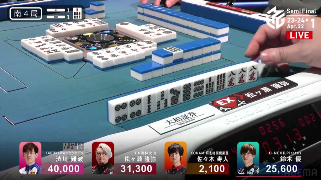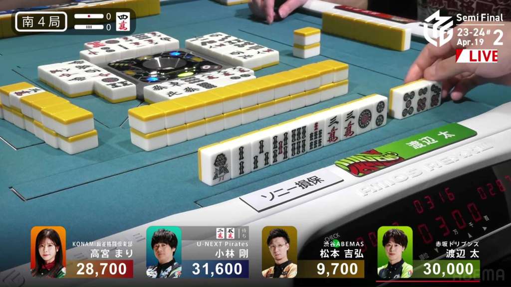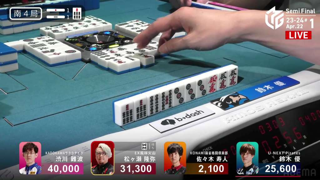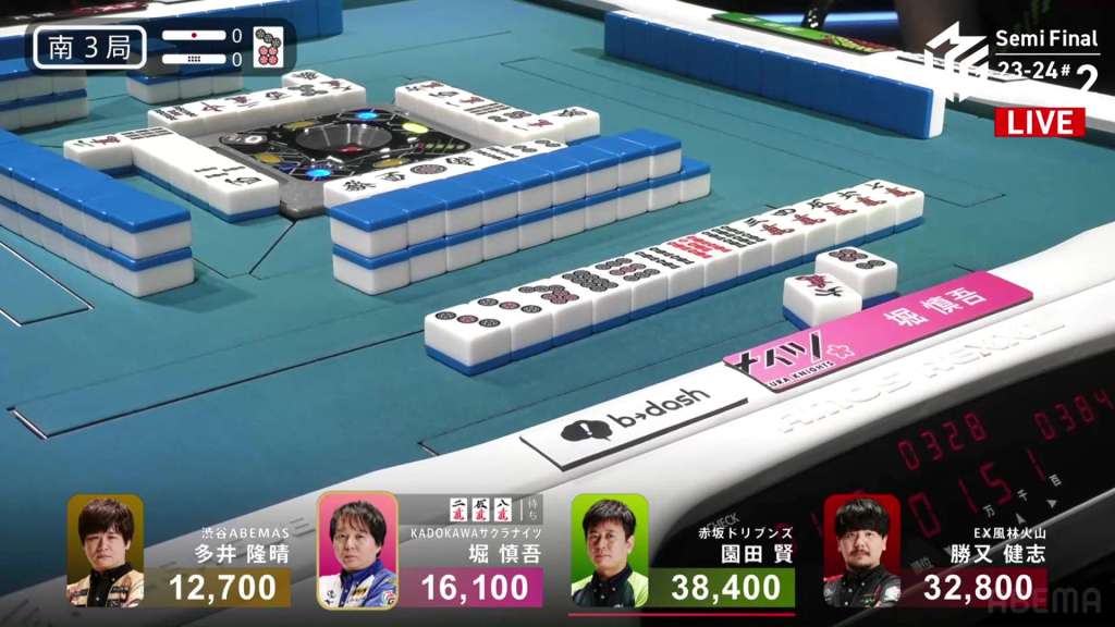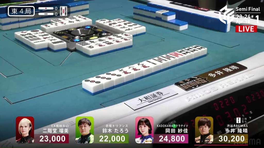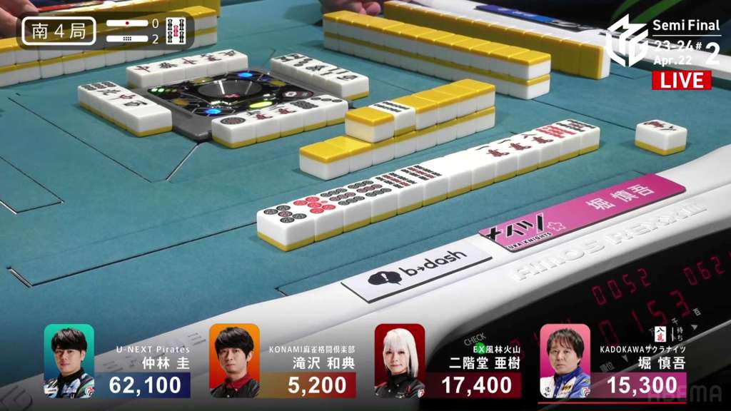 In S4-2, Hori is the dealer in 3rd place, just 2,100 behind 2nd place Aki. Any win will put him in 2nd place, but a dealership gives you a chance to take you even further.