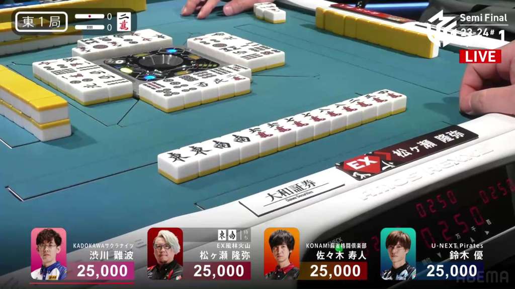 In E1-0, Matsugase is playing for the EX Furinkazan and sitting in the lucky starting south seat.