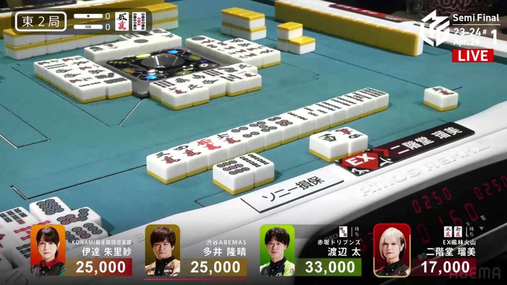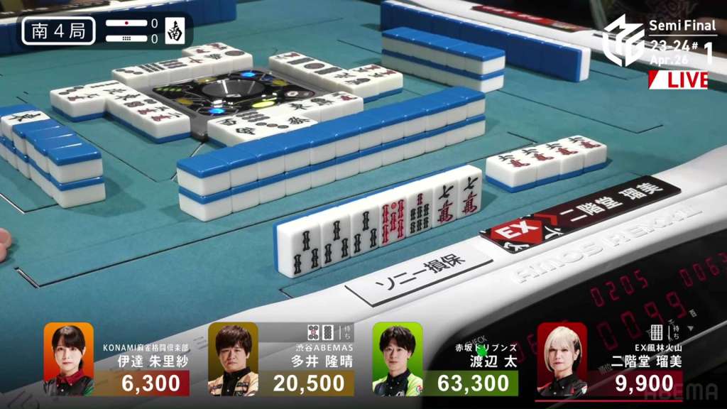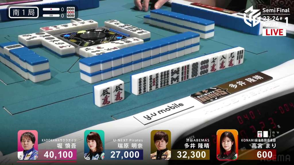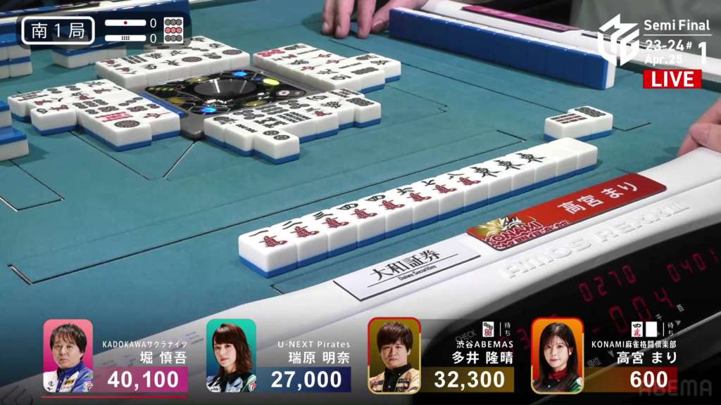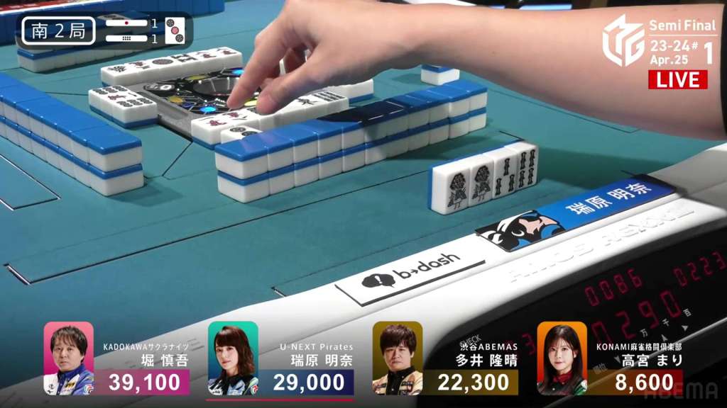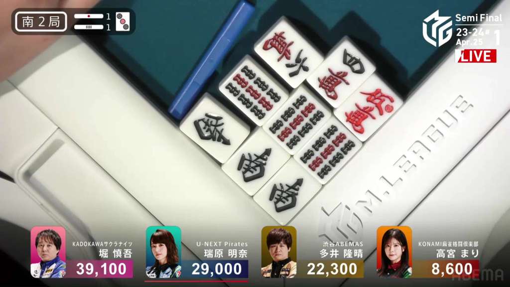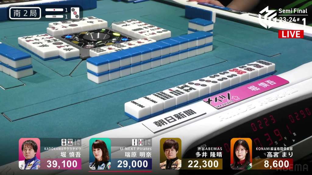 In S2-1, Hori is in 1st place and holding a 10,100 lead over 2nd place dealer Mizuhara.